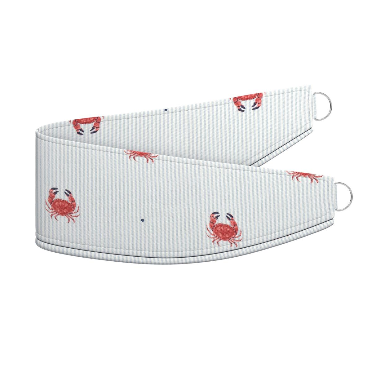 Treat yourself to these Rockpool Crab Made to Order Tieback, offering you a unique crab design on a blue and white striped print for your home. Individually sold, each tieback provides the option of a sleek plain or an elegant piped edge, allowing you to customise the look according to your preferences. Shop the matching Rockpool Crab Made to Measure and Made to Order items available to purchase separately for a complete look! Our Web Exclusive Coastal range features a variety of unique designs, across curtains, tiebacks, cushion covers and more, all made on a 100% cotton fabric base. The 100% natural fibres like cotton are kinder to the environment, as well as to our skin, being naturally hypoallergenic, meaning they are ideal for sensitive and allergy-prone skin, as well as having unique anti-bacterial qualities. You can feel confident that our Coastal range will be gentle to the environment, and to those who may sit close.