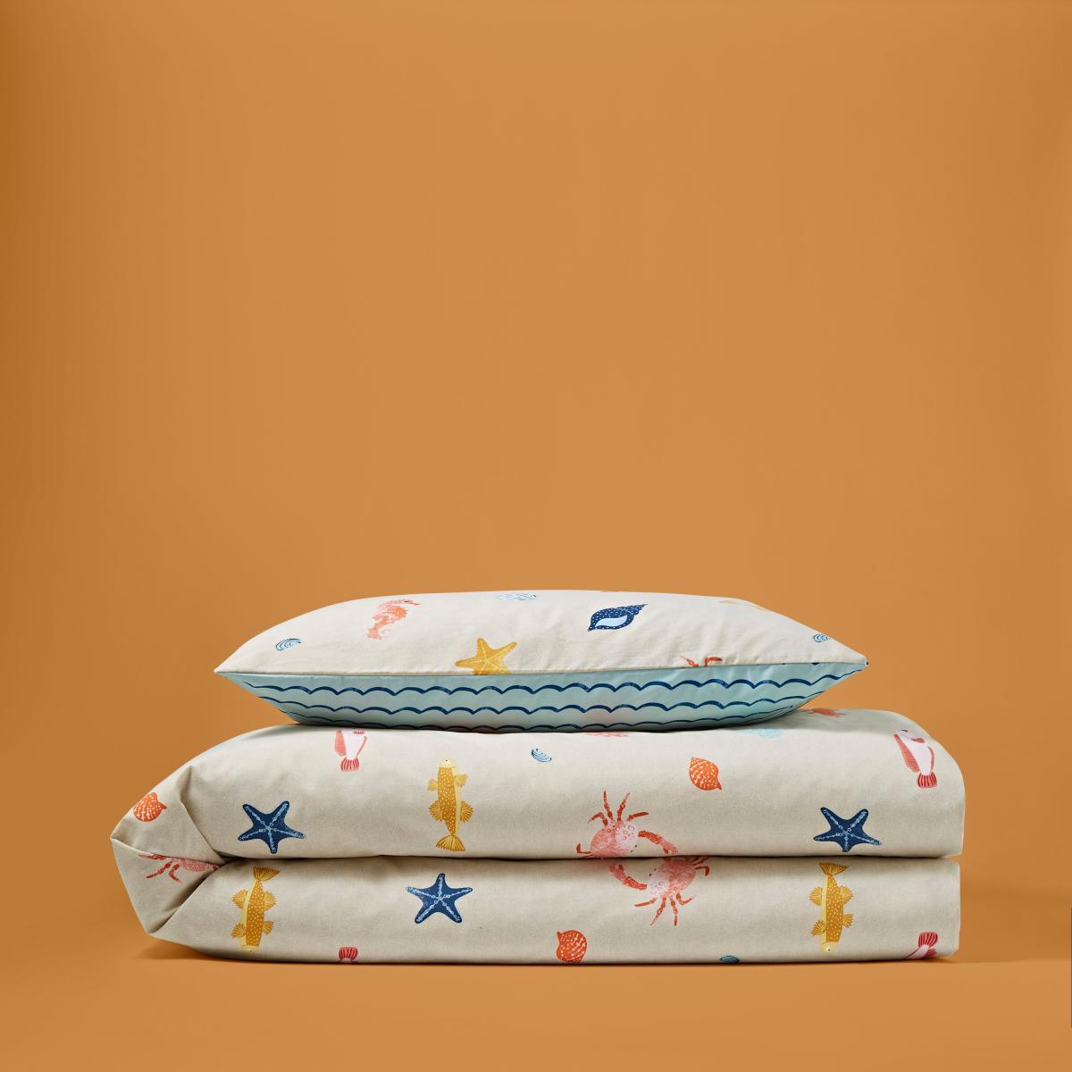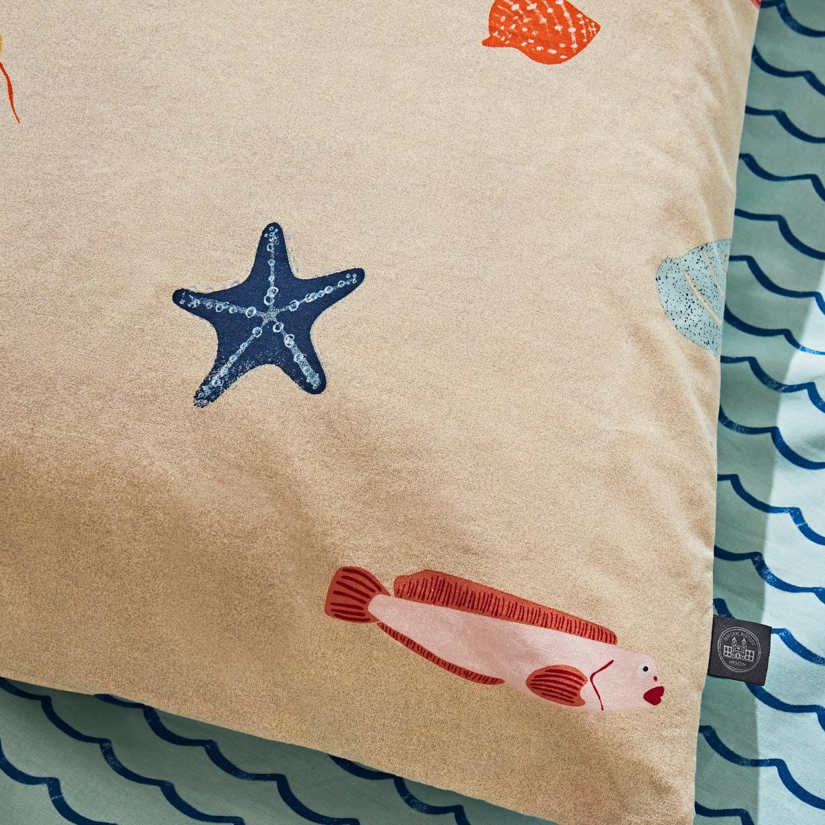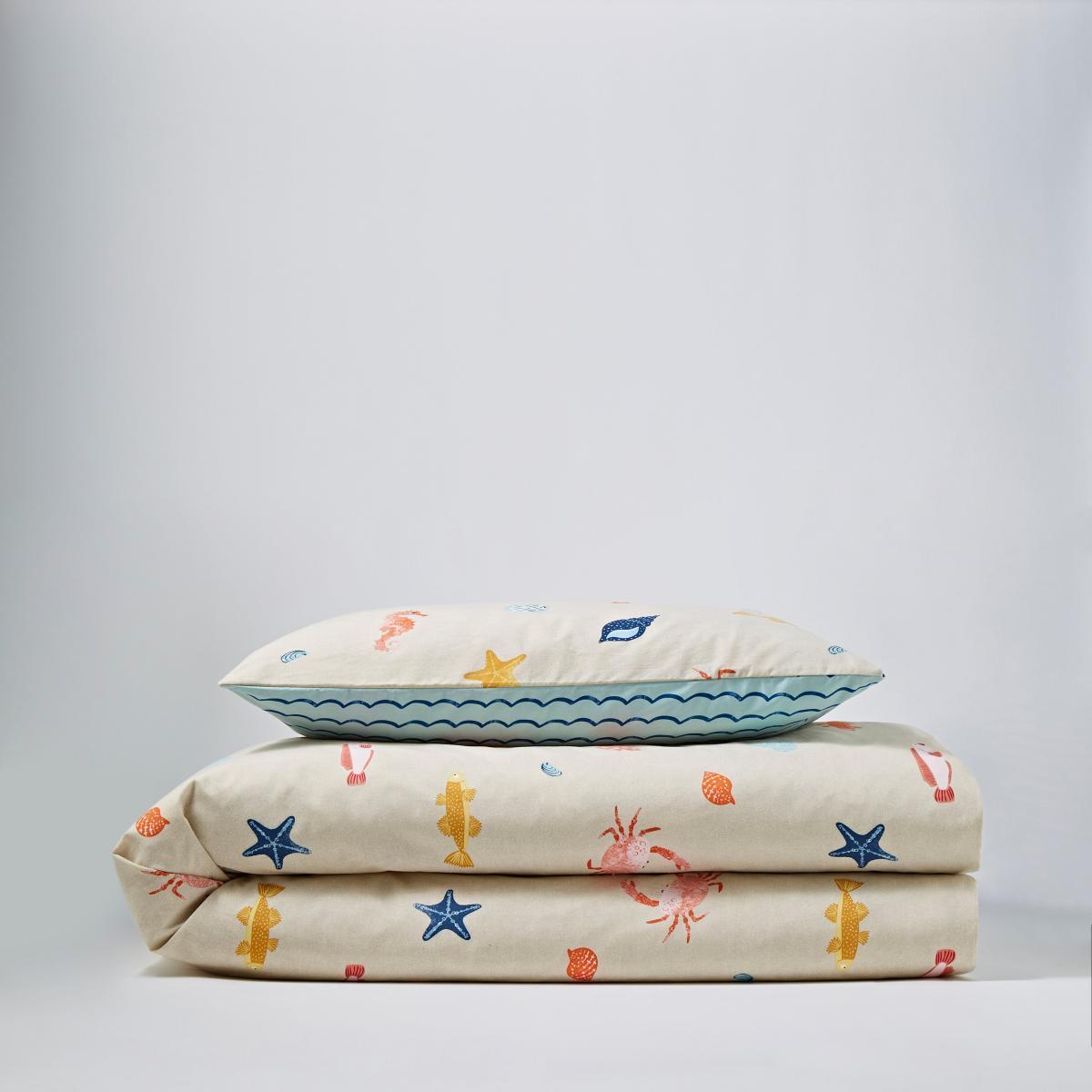 In collaboration with the Natural History Museum Give your little one a bedding of dreams with this super cool Natural History Museum Rockpool inspired duvet cover and pillowcase set. This bedding set is cleverly crafted with a reversible design, with a Rockpool design on one side and a blue sea wave print on the other, so your rockpool lover can switch their bedding up whenever they desire. Made from soft and cosy polycotton with a 144 thread count, which is easy to machine wash. This duvet cover and pillowcase set comes complete with a standard pillowcase which is also reversible and is finished with a secure button closure for an uninterrupted night sleep. MADE IN GREEN by OEKO-TEX® is a unique product label to trace the countries and production facilities - search the product label for more information. Natural History Museum x Dunelm Rock pools are incredible, miniature worlds that only make an appearance once the tide goes out. Twice daily when the waves retreat, a pocket-sized habitat is revealed as if by magic. Awash with life, you can find an amazing number of creatures here from crabs, starfish and seaweeds to limpets, whelks, seahorses and so much more. Rock pools are incredible places for young nature lovers to spot amazing wildlife and to discover some of the extraordinary treasures left behind by these fascinating creatures who live under the sea! Secret pockets of life just waiting to be explored! © The Trustees of the Natural History Museum, London 2023. All Rights Reserved.