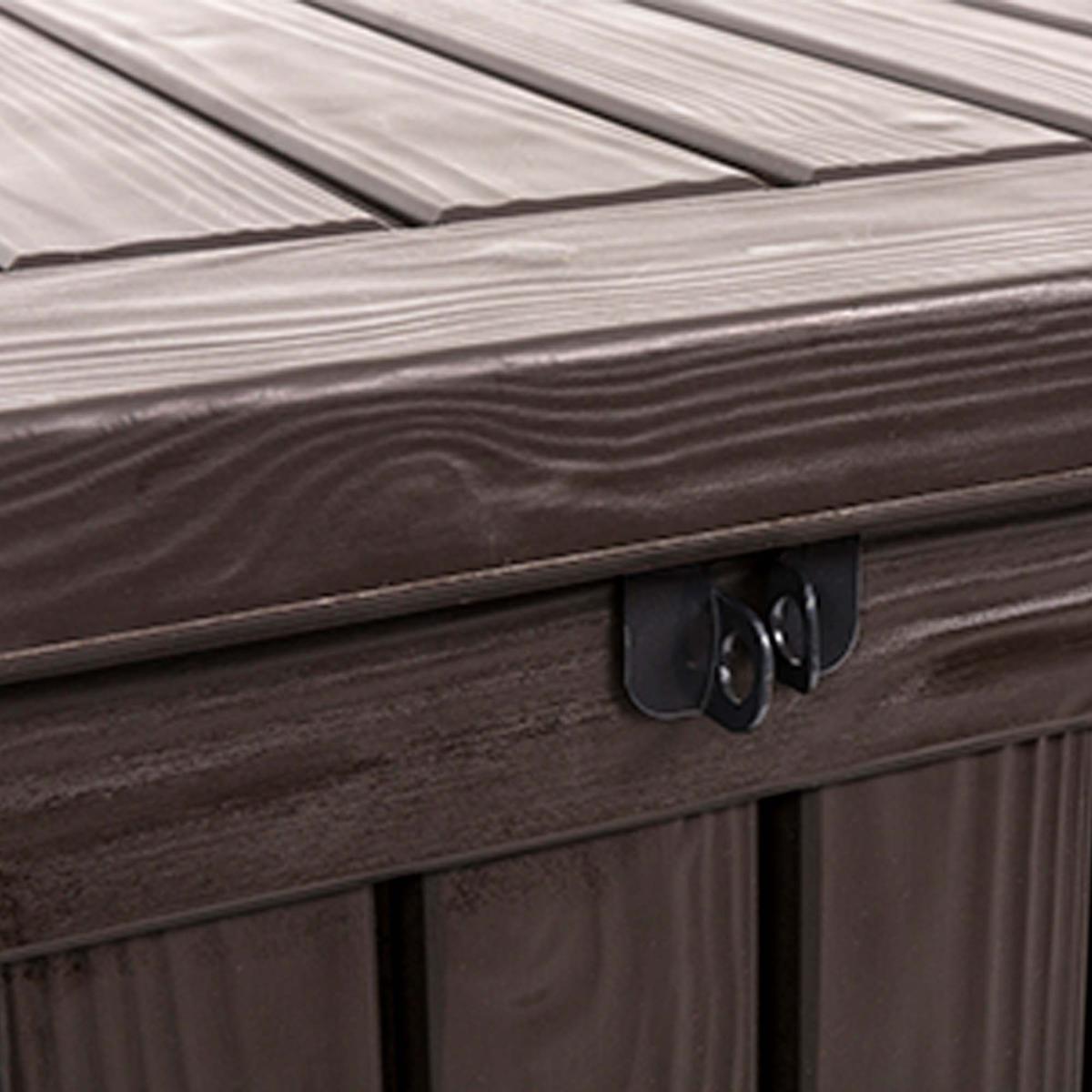ThisRockwood 570. L Anthracite Storage Box is perfect for storing all your garden essentials. Finished with a natural wooden look, this box is water resistant to help protect the contents from showers. The pistons allow you to easily open the box. The box arrives flat packed so full assembly is required, however this is easy to do!.