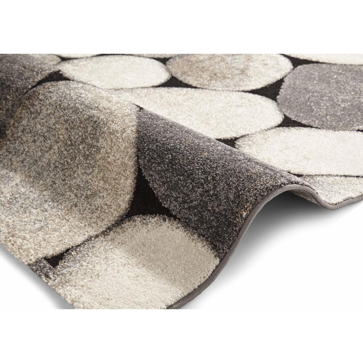 Bring the natural world indoors with the stunningly creative Rocky rug. Featuring a beach-like arrangement of pebbles, this contemporary rug is all soft natural shades and smooth rounded shapes. In tones of cream and grey, pebbles appear against a black background and create a neutral palette that’s a perfect fit for minimal living spaces or even a zen-like modern bedroom. Machine woven from heat set polypropylene, this rug is extremely durable as well as being colourfast. Best of all, it’s very soft underfoot. Distinctive and very on trend, the Rocky rug is available in two sizes.