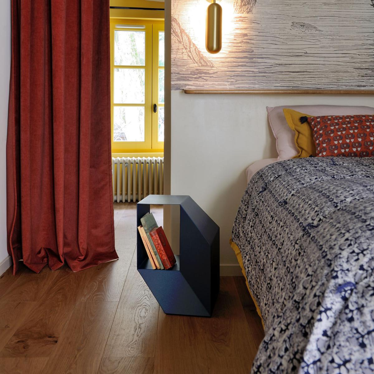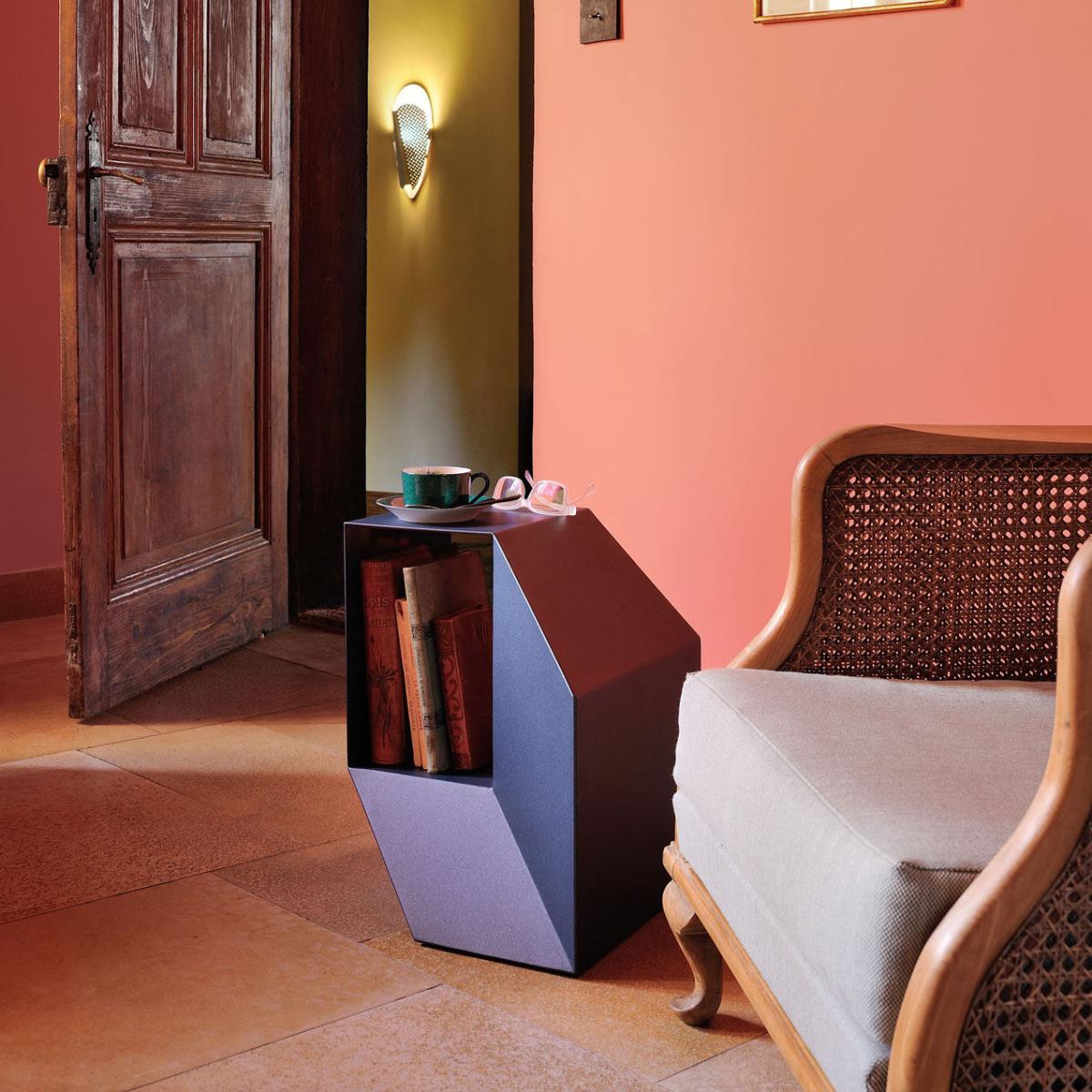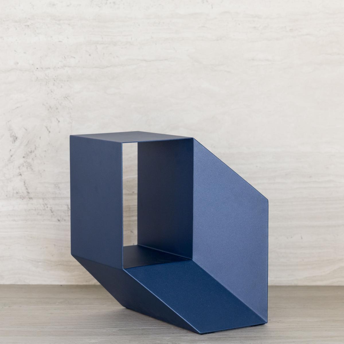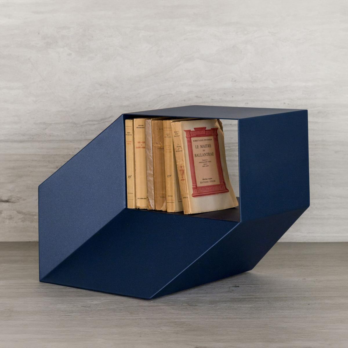 A strong visual identity for this sculptural End table with its angular profile, creating an astonishing optical illusion. Lebanese-born designer Charles Kalpakian reinterprets a classic marquetry motif in 3 dimensions, playing with our perception of space and volume. The Rocky Side end table plays with the effects of perspective: it changes shape and transforms itself according to the observer's point of view. Asymmetrical lines, unbalanced volumes: the Rocky Side end table appears to be tilted, but this is merely an optical illusion. In reality, all surfaces are perfectly flat! You can store your books and objects inside, in the central open space, as well as on top of the unit. Rocky Side can be positioned in different ways: vertically or horizontally.