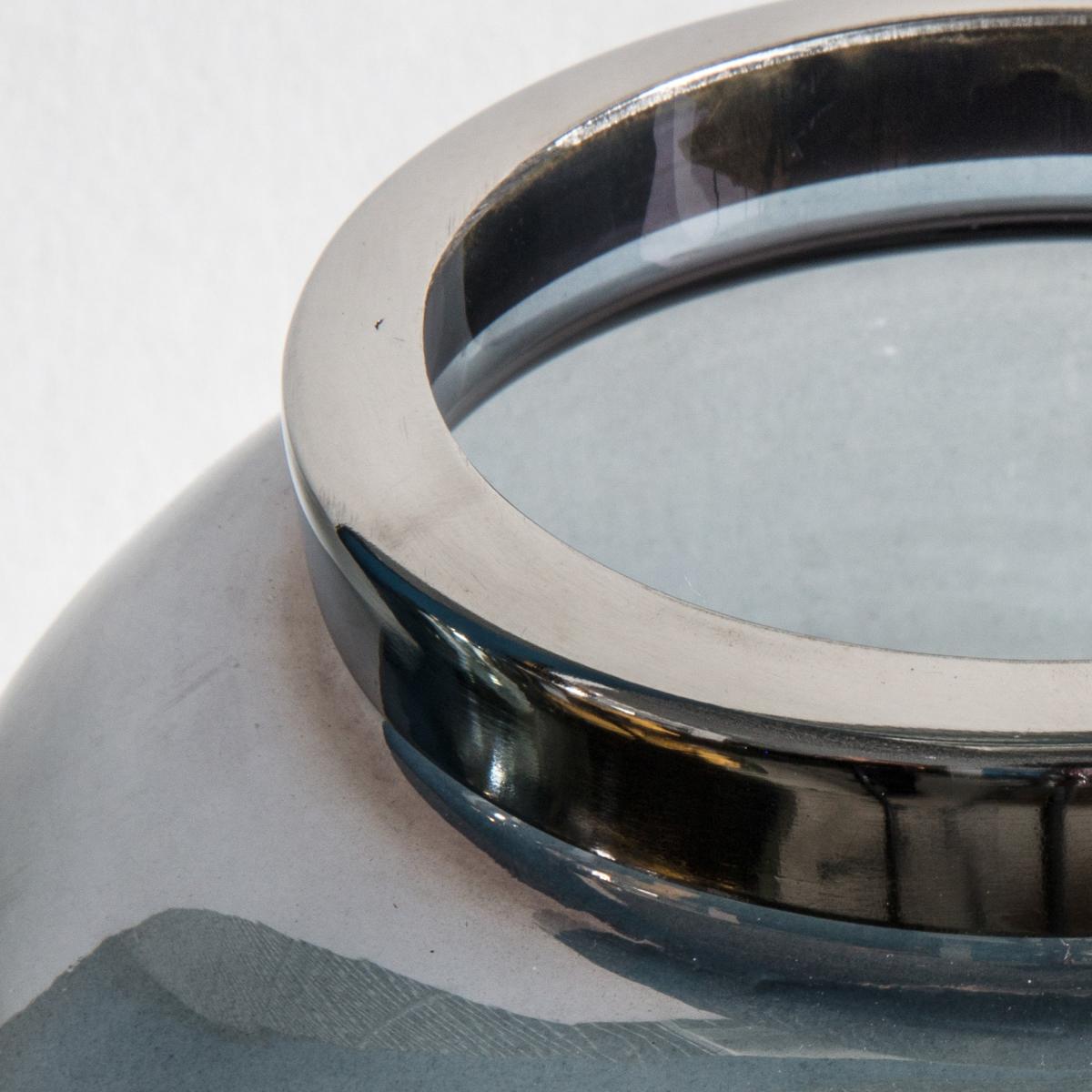 The Rodenbek Lustre Vase, in a grey glass with a lustre finish, offers a simple stylish design, with the metallic rim adding a touch of detail. A smaller version is also available, and both sizes are also offered in green and smoky brown.