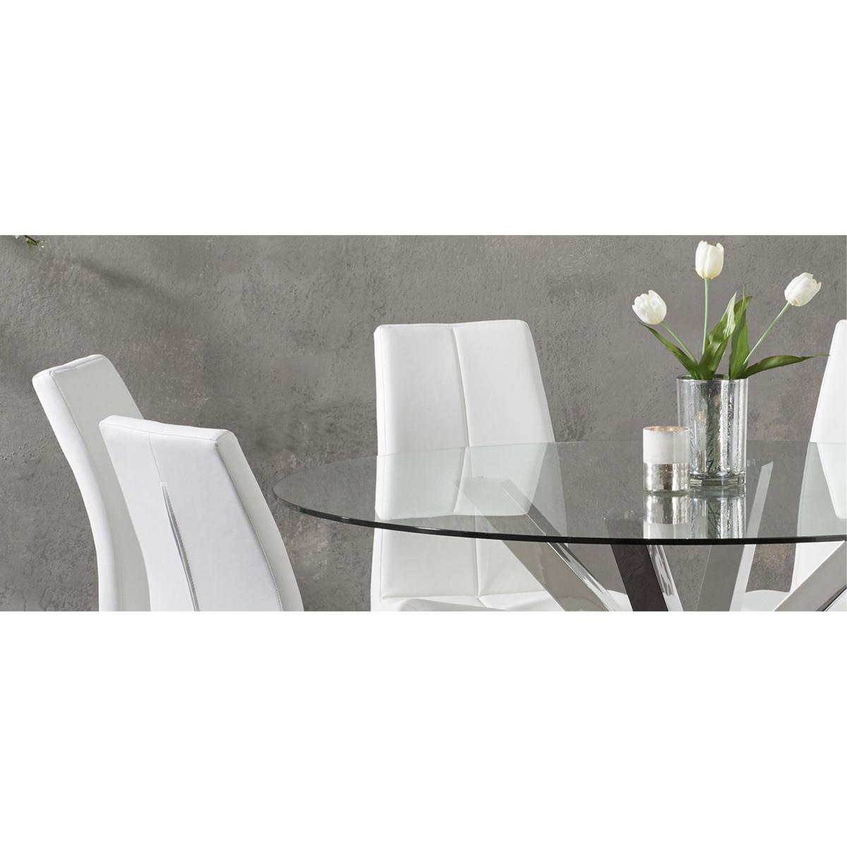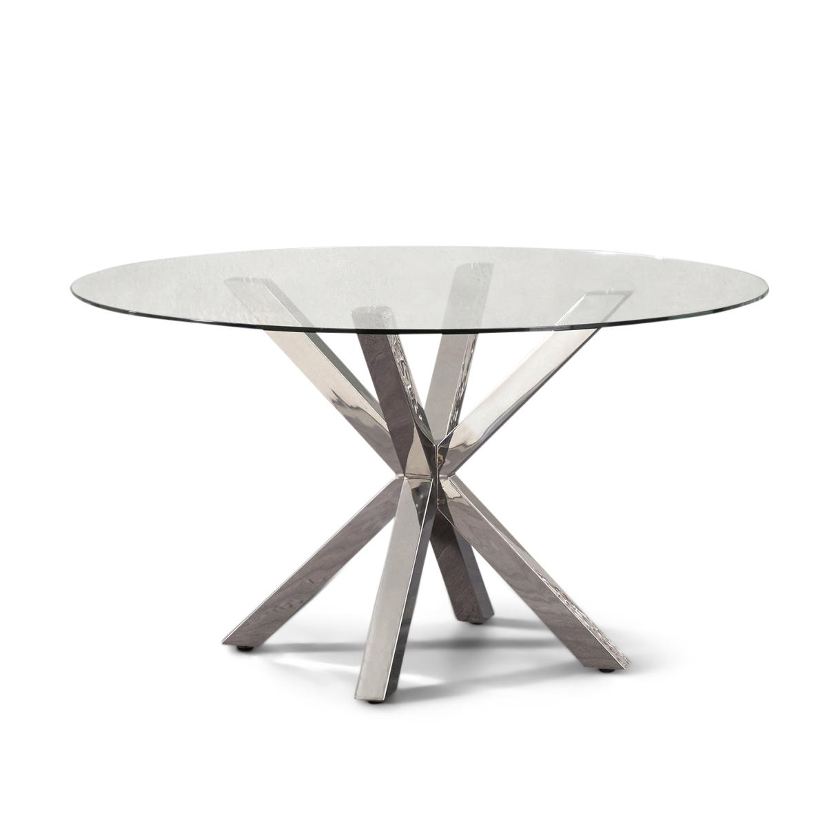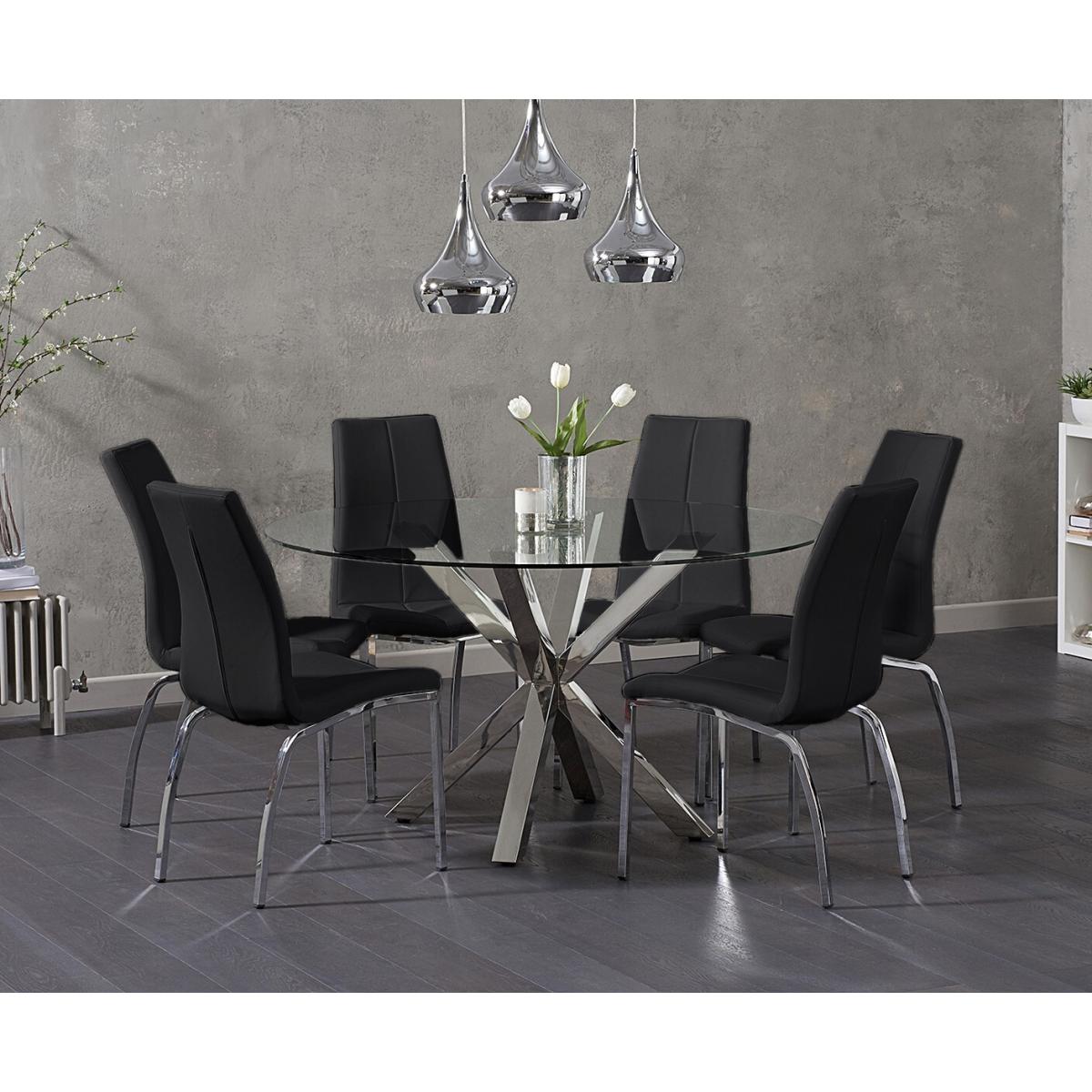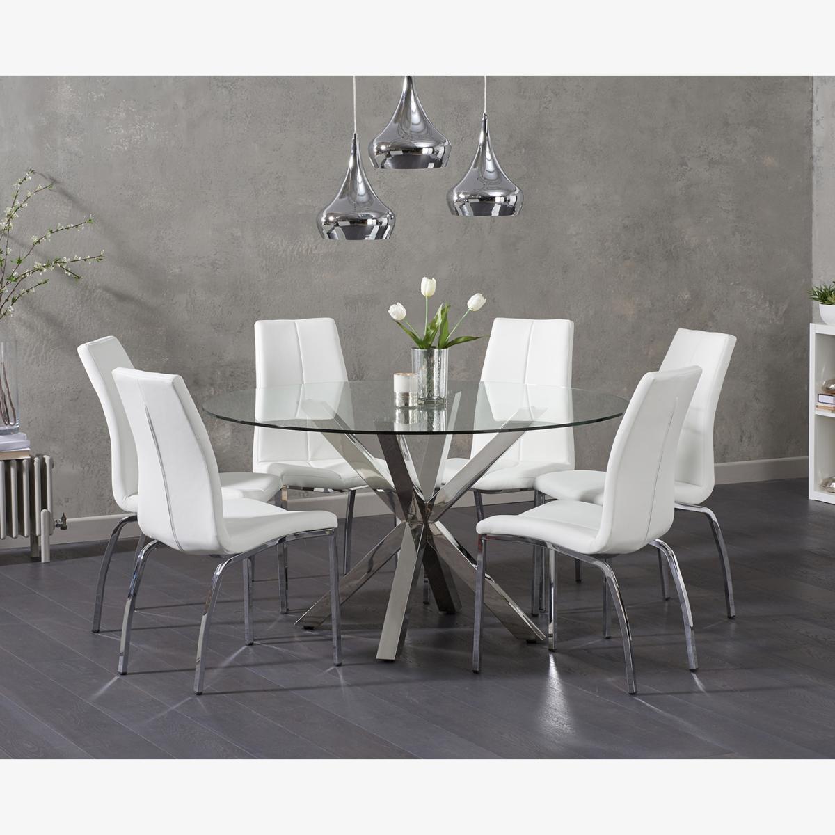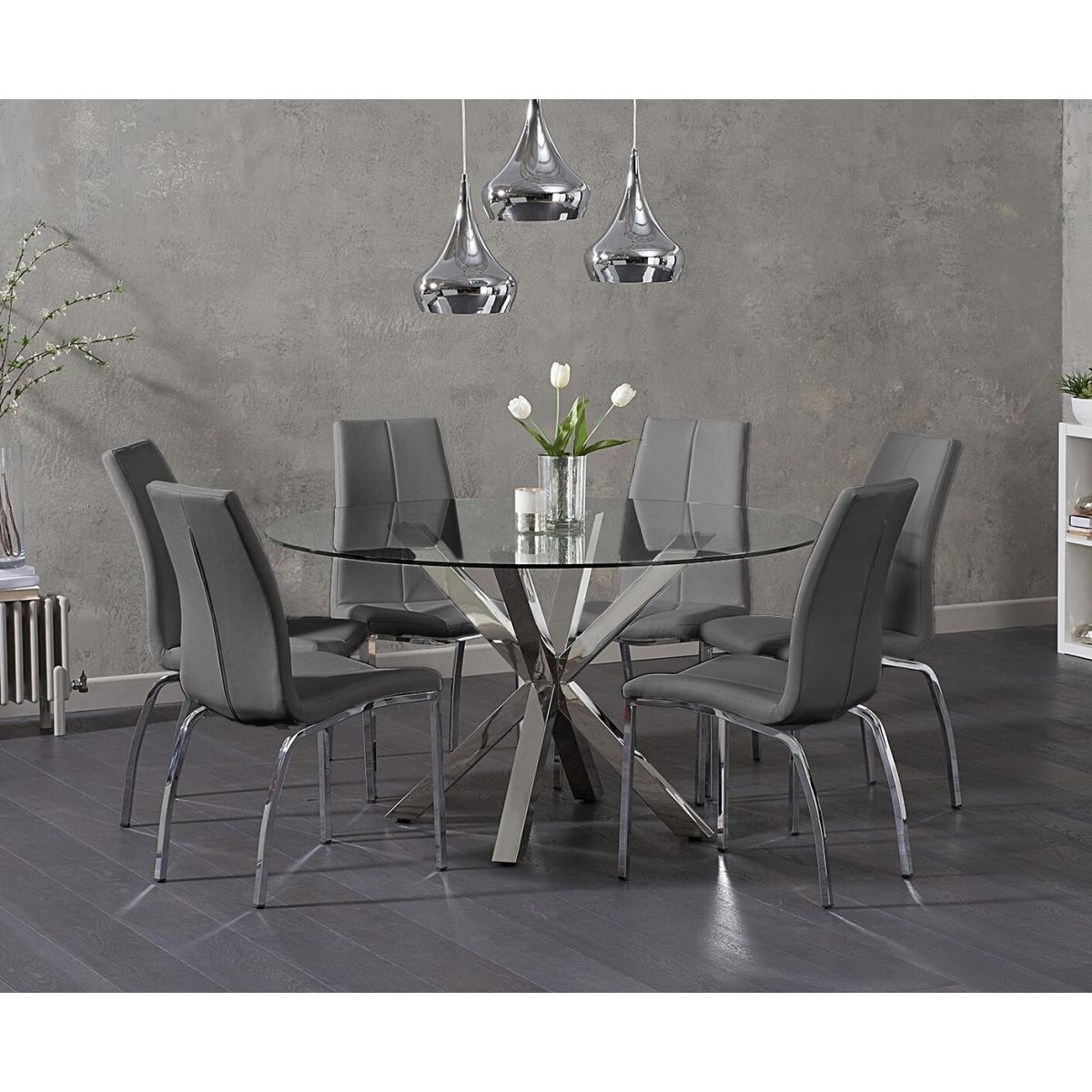 Rodin 135cm Round Glass Dining Table with 4 Grey Marco Chairs