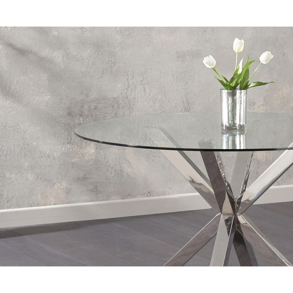I love this round glass dining table because of its sleek, contemporary look that instantly brightens any space. It’s versatile and works well in both modern and minimalistic interiors as well as more eclectic settings, making it a flexible choice for various styles. The clear glass top creates a sense of openness, which is ideal for smaller dining areas or open-plan kitchens. Pairing it with the grey Marco chairs adds a sophisticated contrast, and I’d suggest styling with a simple centrepiece like a vase of fresh flowers or small candle display to keep the look clean and understated. For practical tips, keep the glass surface clutter-free and use coasters or placemats to protect it, while the chairs provide comfort without compromising on aesthetics.