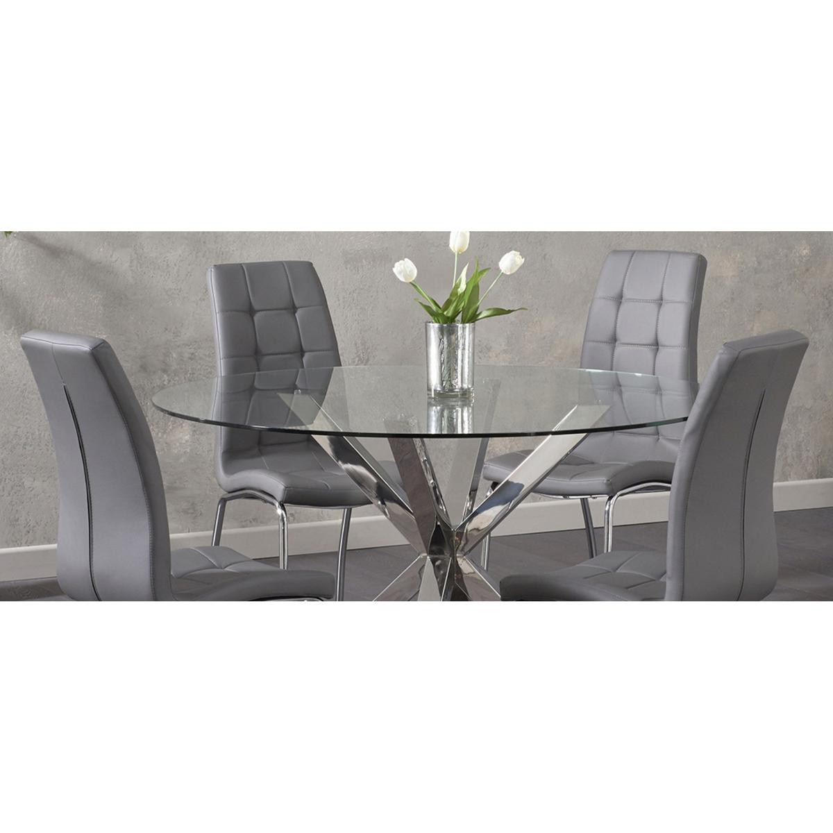The Rodin collection joins a glass surface to a triangular, modern leg structure in a diverse table range that will complement its surroundings.