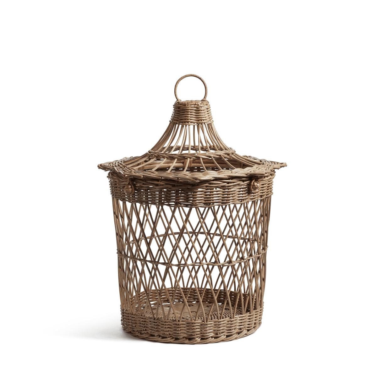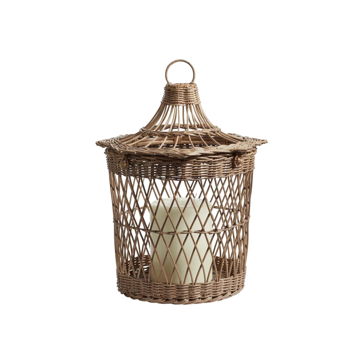 Our Rodin Rattan Lantern is named for its highly intricate crosshatch weave that takes skilled artisans a day and a half to craft. The lid can be lifted off so you can place a candle inside – we recommend our LED candles – and is attached to the body with toggles. It can be hung from its loop or placed on the ground depending on your preference.