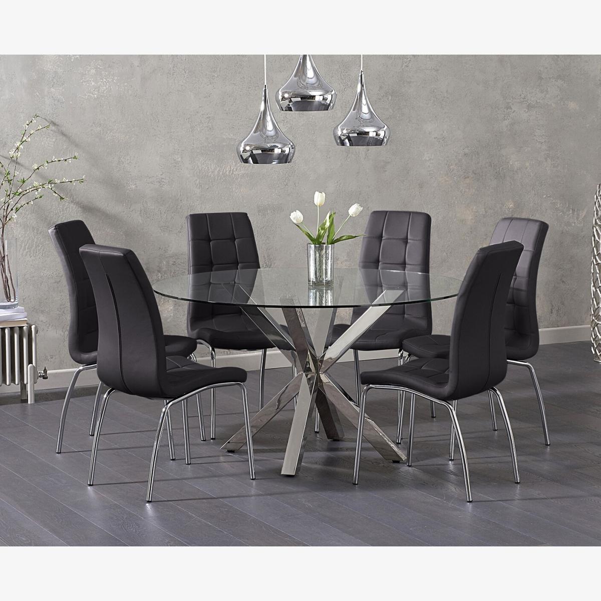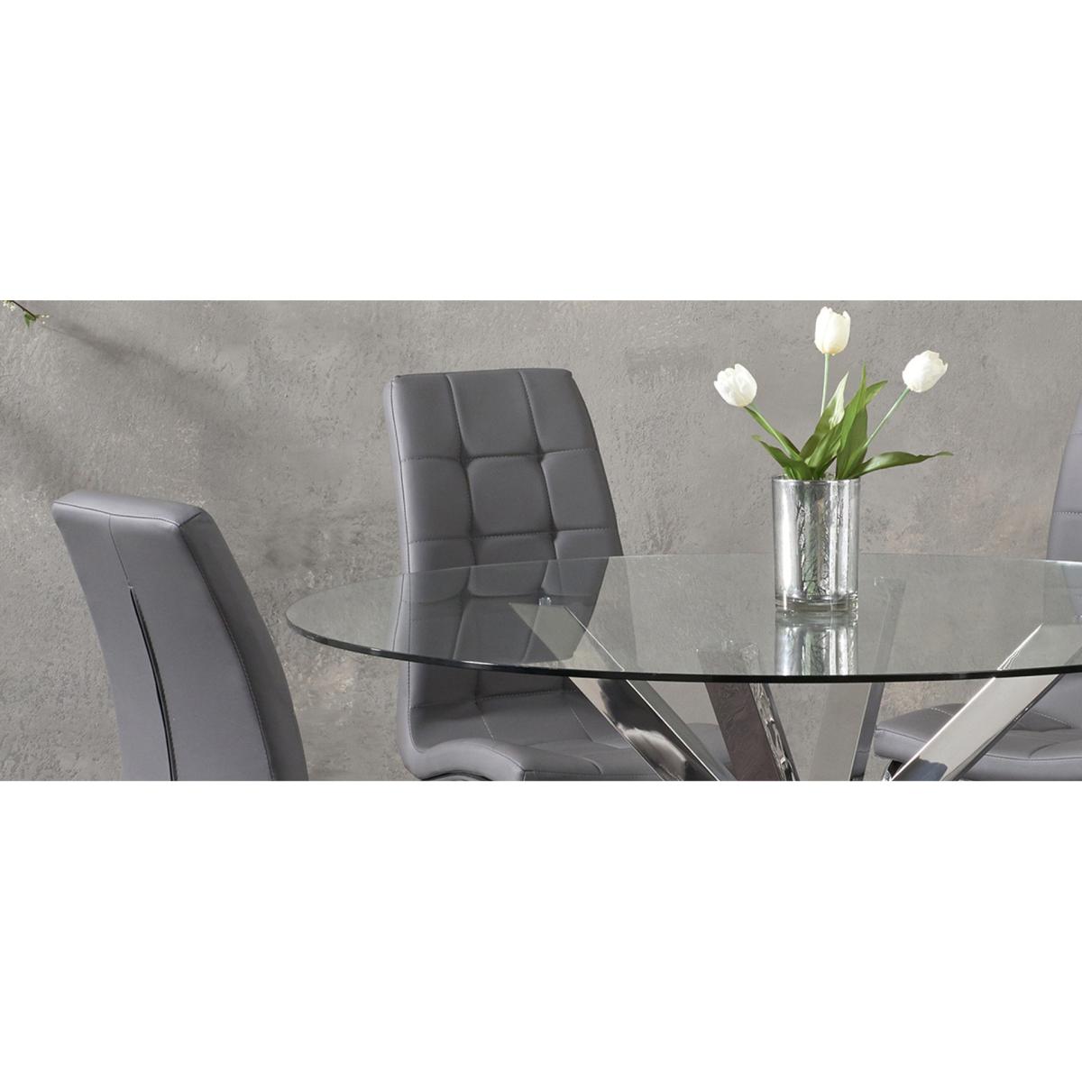 The Rodin collection joins a glass surface to a triangular, modern leg structure in a diverse table range that will complement its surroundings and look great in any dining room.