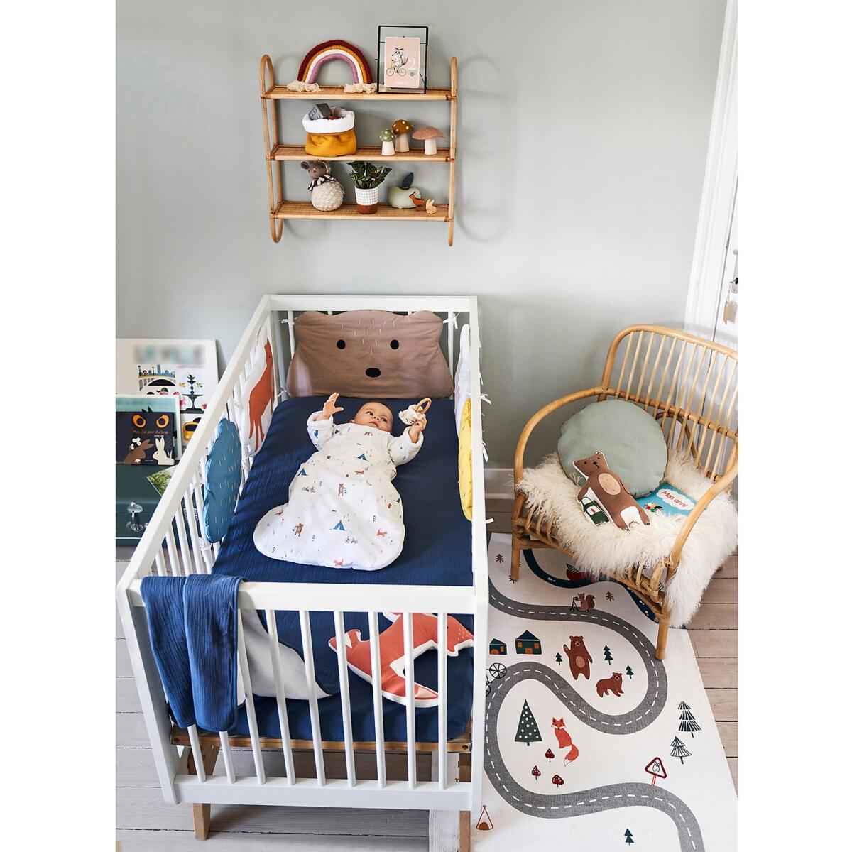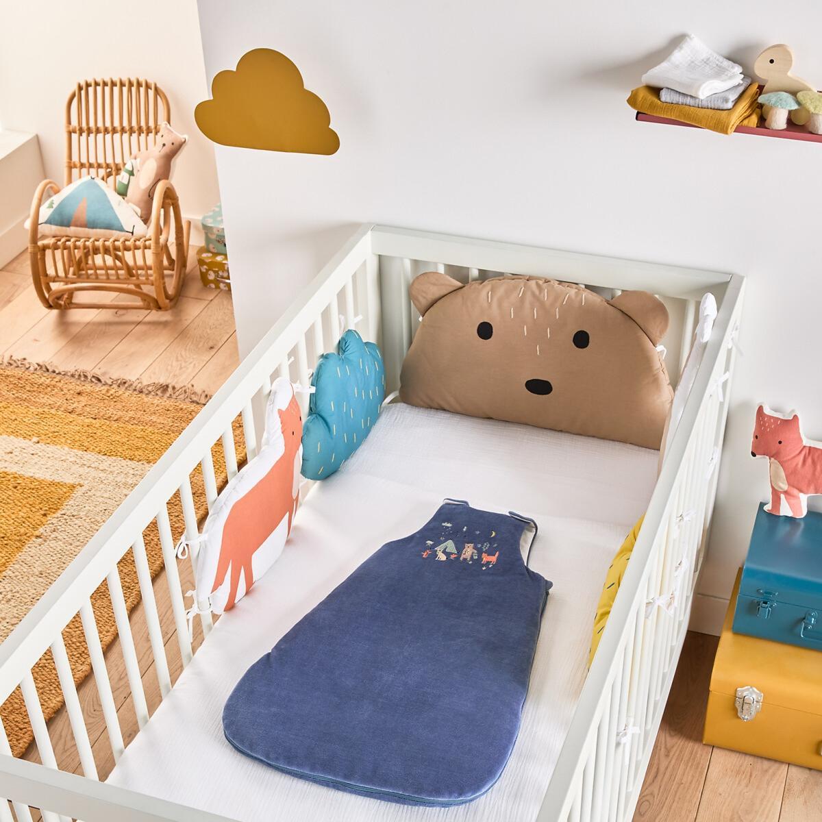 Playful, colourful: discover the Rodolphe range and its village populated by small animals. Thanks to the Rodolphe cot bumper, create a cheerful atmosphere in baby's room.