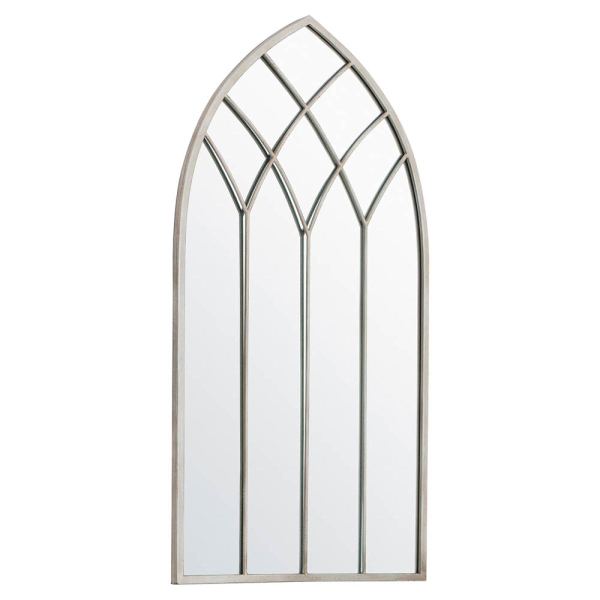 Stunning arched metal window mirror in a vintage cream painted finish.