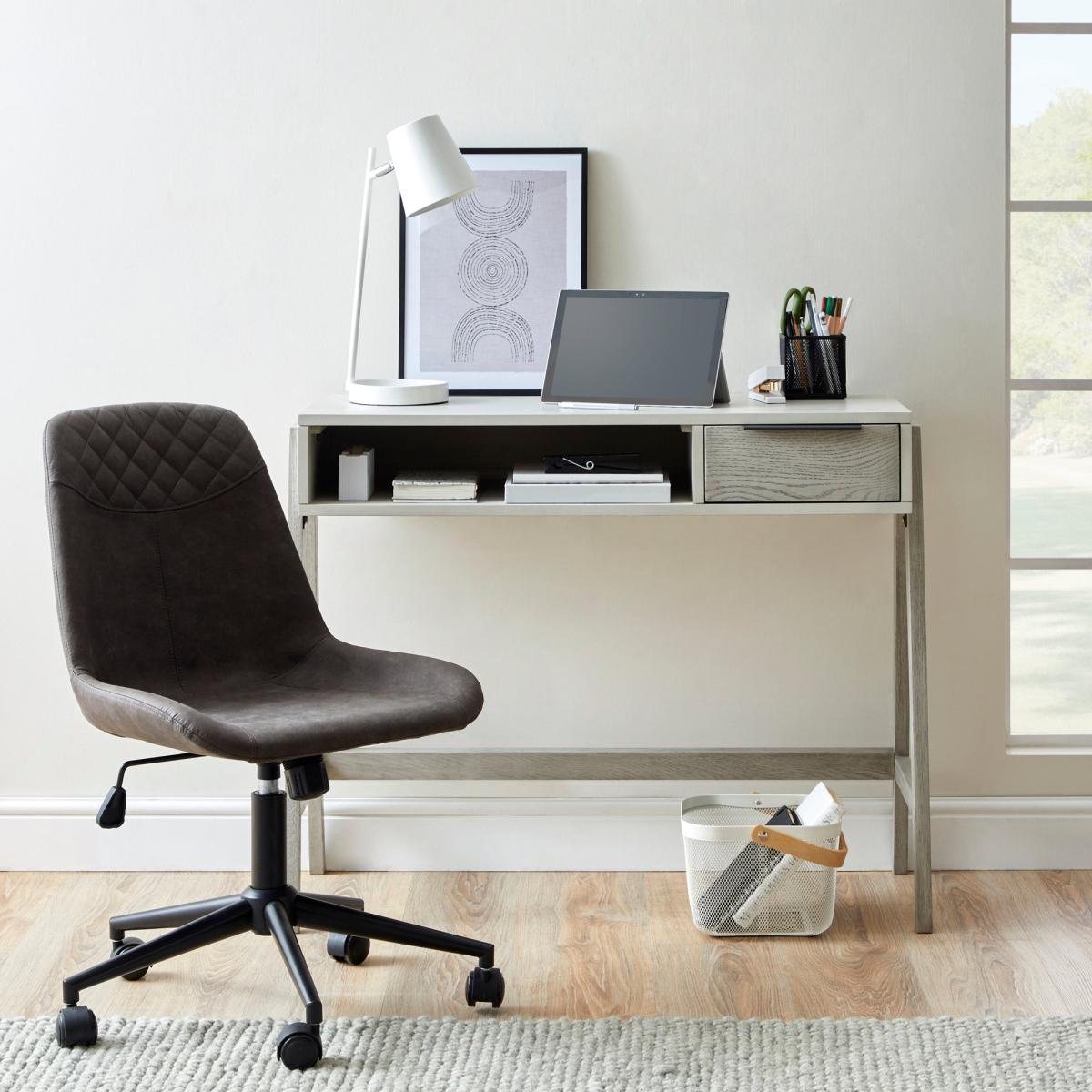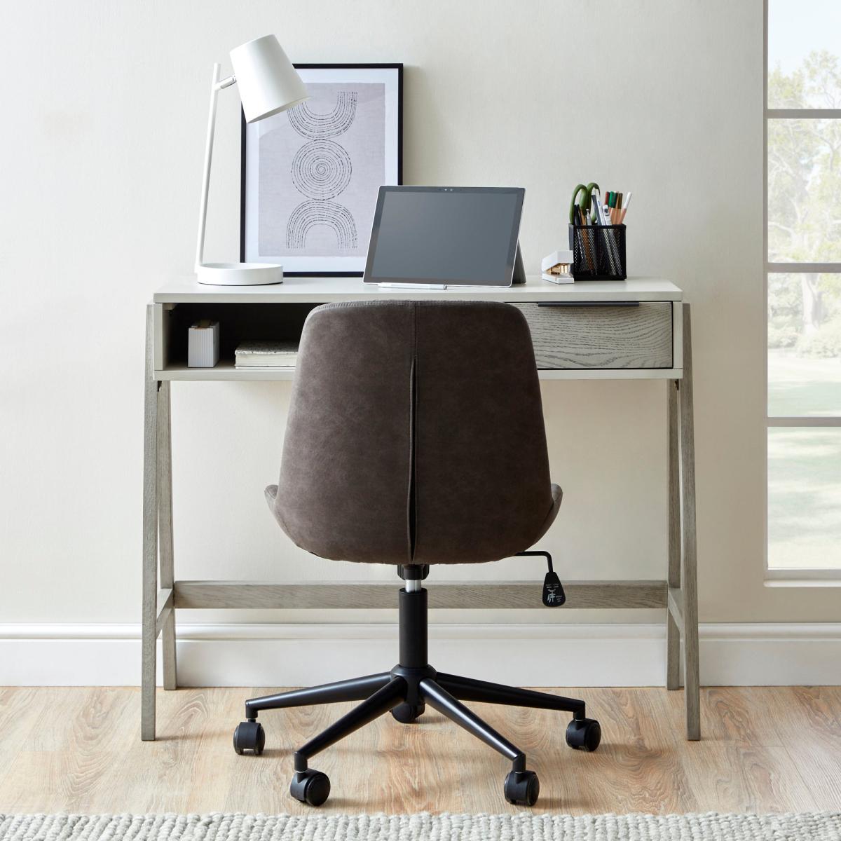 I really like this desk for its contemporary, industrial vibe, which works well in modern or minimal interiors. The concrete effect adds texture and visual interest without overwhelming the space, making it a versatile piece for a home office or creative corner. To style around it, I recommend pairing it with sleek accessories in monochrome or metal finishes to complement its urban aesthetic. Practical tip: keep surfaces clutter-free with streamlined organisers, and consider adding a statement desk lamp or a striking art print behind for extra personality. This desk’s neutral tones mean it can easily sit alongside colourful accents or more muted palettes, making it a flexible choice for various interior styles.