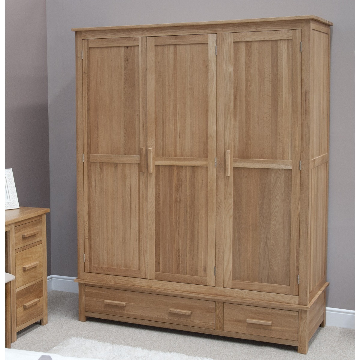 The Rohan Oak Range is a high quality collection of furniture that is crafted using traditional techniques. Made from solid oak with an oil finish, it is a collection of furniture that is designed to complement any home. The Rohan Oak Triple Wardrobe is a wonderfully impressive piece of furniture that is capable of solving all your bedroom storage issues in style. Featuring a triple hanging space, the Rohan Oak Triple Wardrobe also features two generously sized drawers for additional storage. Supplied with both oak and metal handles.