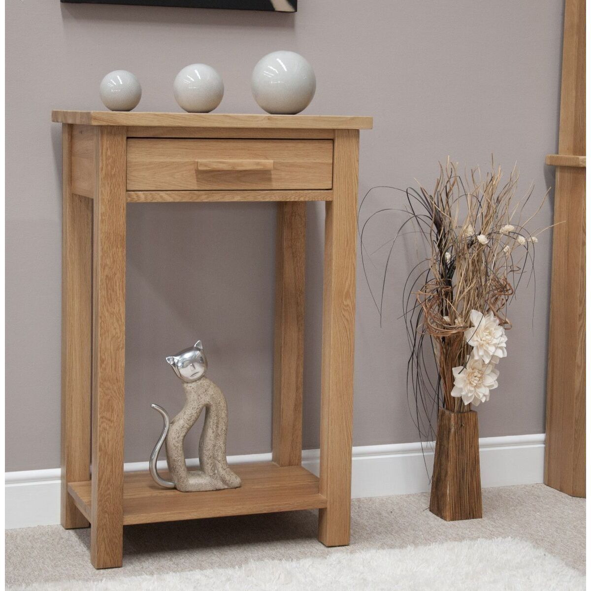 The Rohan Small Hall/Console Table is complete with a petite drawer - the perfect place to store keys and leaflets and one shelf. Manufactured with stunning oak and the epitome of functionality, its smooth finish will make your guests incredibly envious. Supplied with both oak and metal handles.