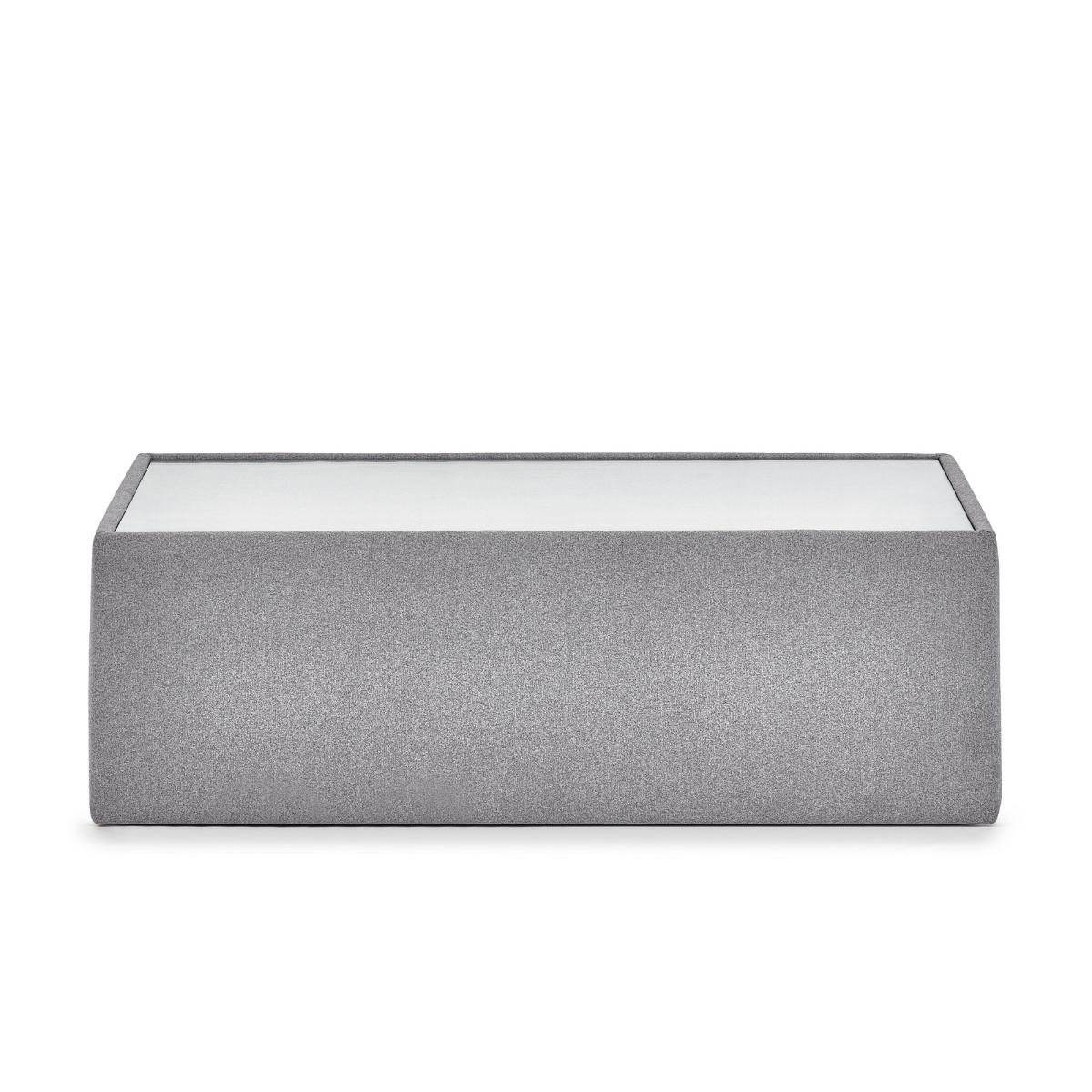 * Rectangular glass top* Wool Fabric base* Arrives assembled This table's spacious surface provides ample room for drinks, snacks, and decorative items, while its robust construction ensures long-lasting durability. The design of this coffee table emphasises clean lines and a minimalist approach, making it an excellent fit for modern interiors. Its sleek finish and contemporary style create a focal point that enhances the overall aesthetic of your living space.