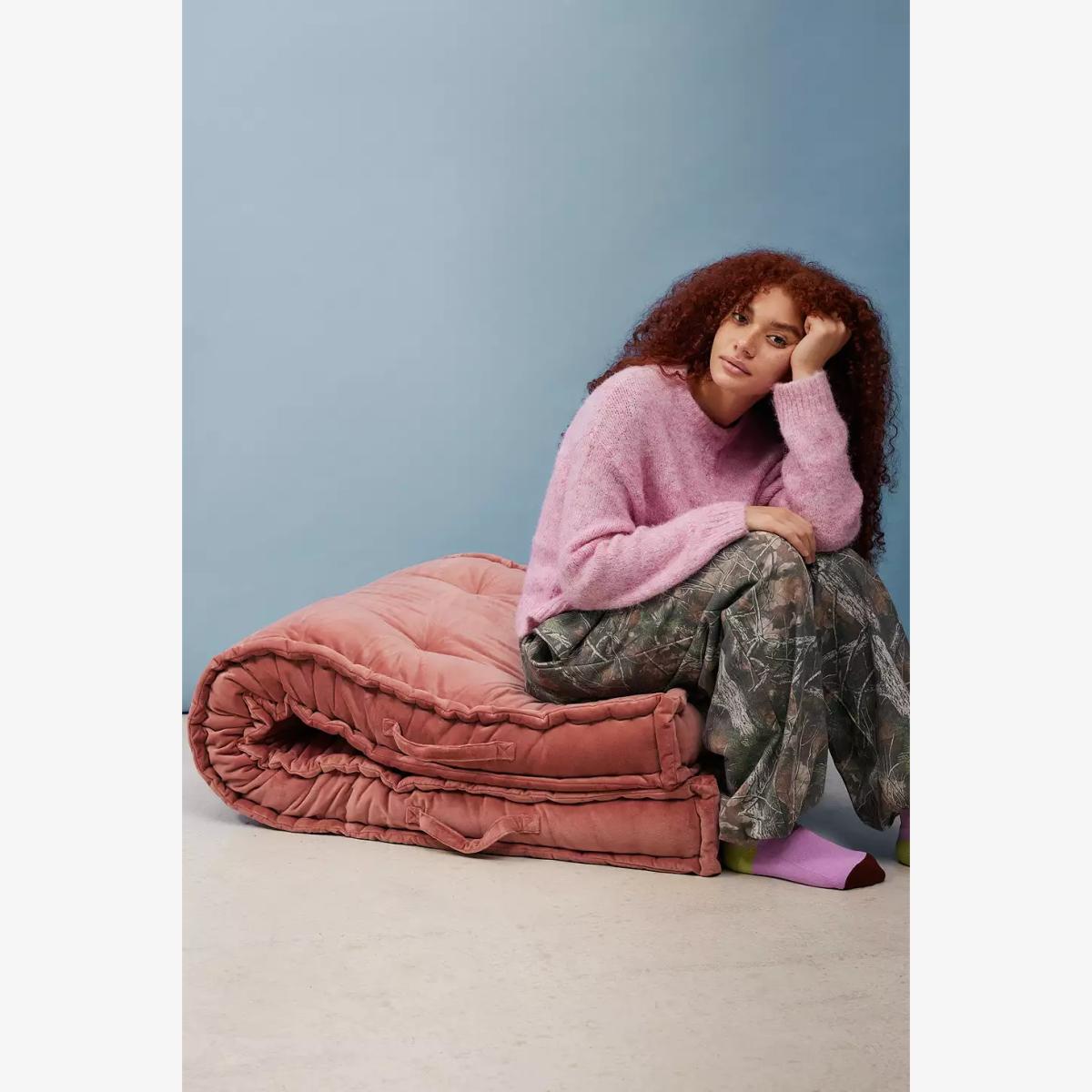 Luxe velvet daybed cushion, the perfect place to lounge around on lazy days. Use with a daybed frame or simply throw down as a floor cushion, this versatile piece adds a unique seating solution to your relaxed space. Finished with a rectangular silhouette and pin-tucked details. *Online return only. This item cannot be returned in store* **Content + Care** \- 100% Cotton \- Hand wash **Size** \- Dimensions: L: 188cm x W: 68.5cm x H: 15cm \- Shipping container: 46cm x 56cm x 74cm