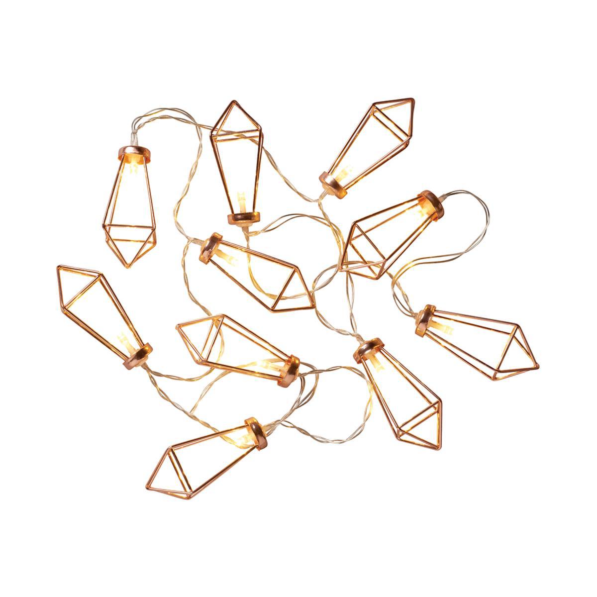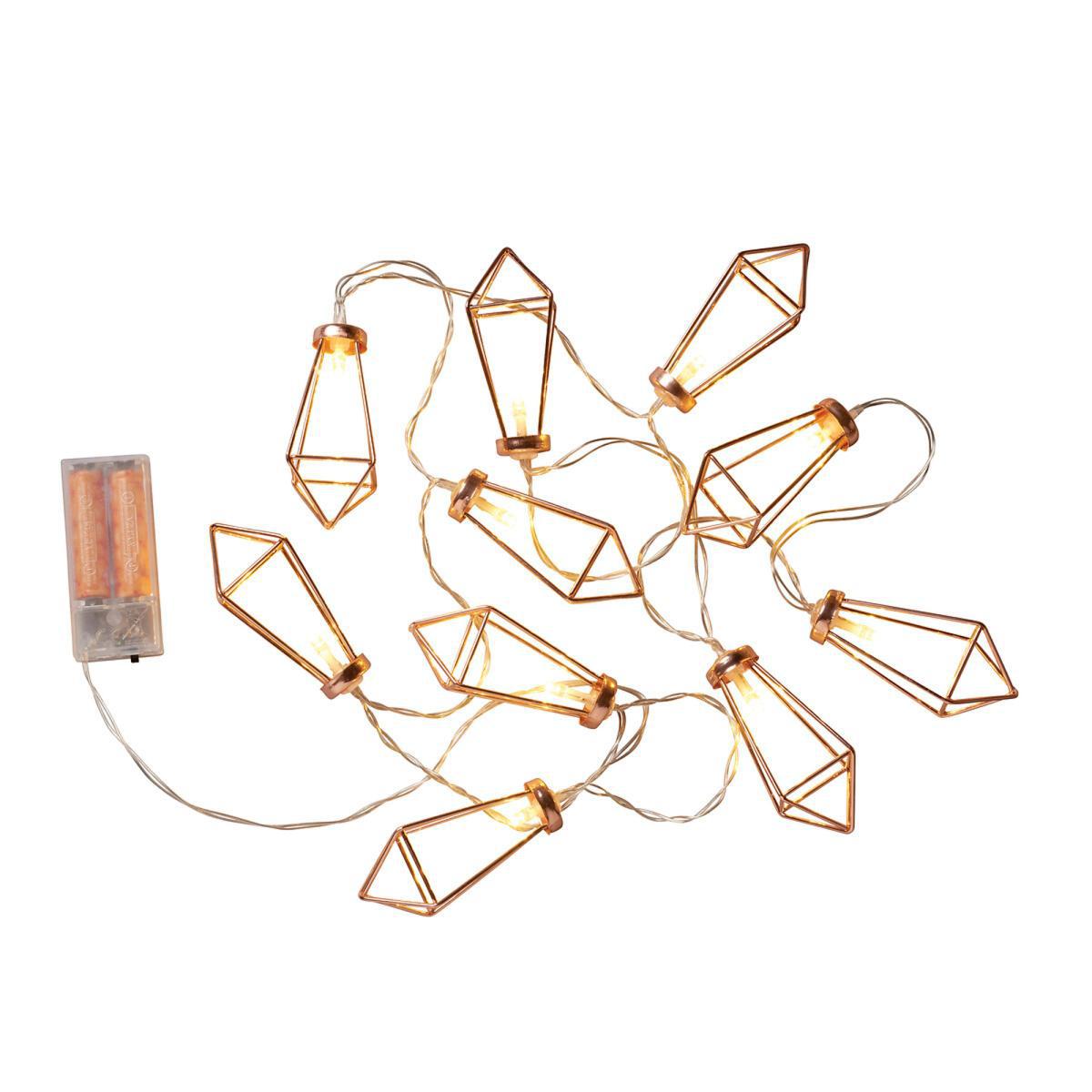 Indoor 10 pendant LED diamond string lights in rose gold. Requires 2 x AA Batteries. Bulb Type: Integrated LED bulbs (non replaceable). This product will be dispatched by one of our trusted suppliers. You’ll be contacted by their selected courier about your delivery.