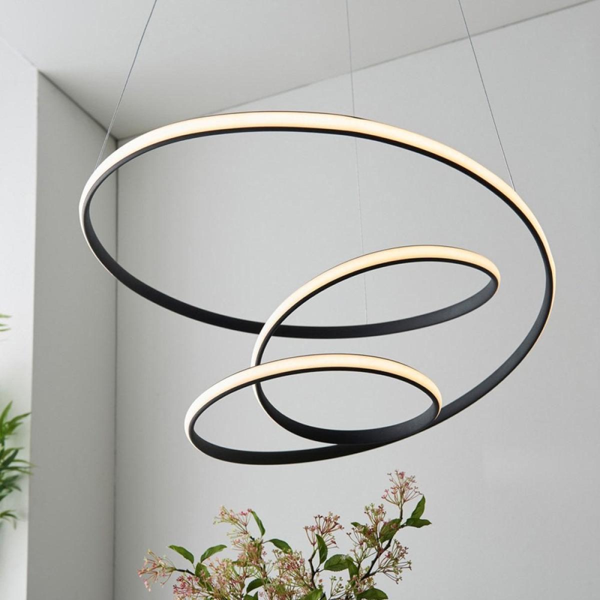 The Dune pendant light takes lighting and transforms it into art. This black metal pendant with a curved swirl design is a contemporary sculptural piece that creates the perfect fine-dining experience in your dining room. With integrated, LED strip for the ideal energy-saving glow.