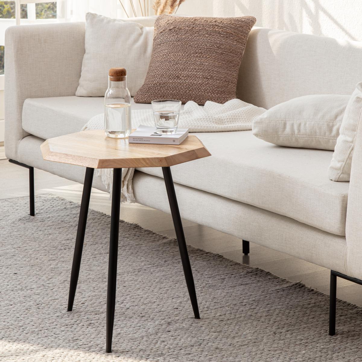 Made from solid wood the chunky octagonal top is perfect for anything you want close at hand. The mid-modern tapered legs are angled just the right way to elevate those awkward corners. It is laid-back style will go well with your couch or bed. Get ready for compliments.