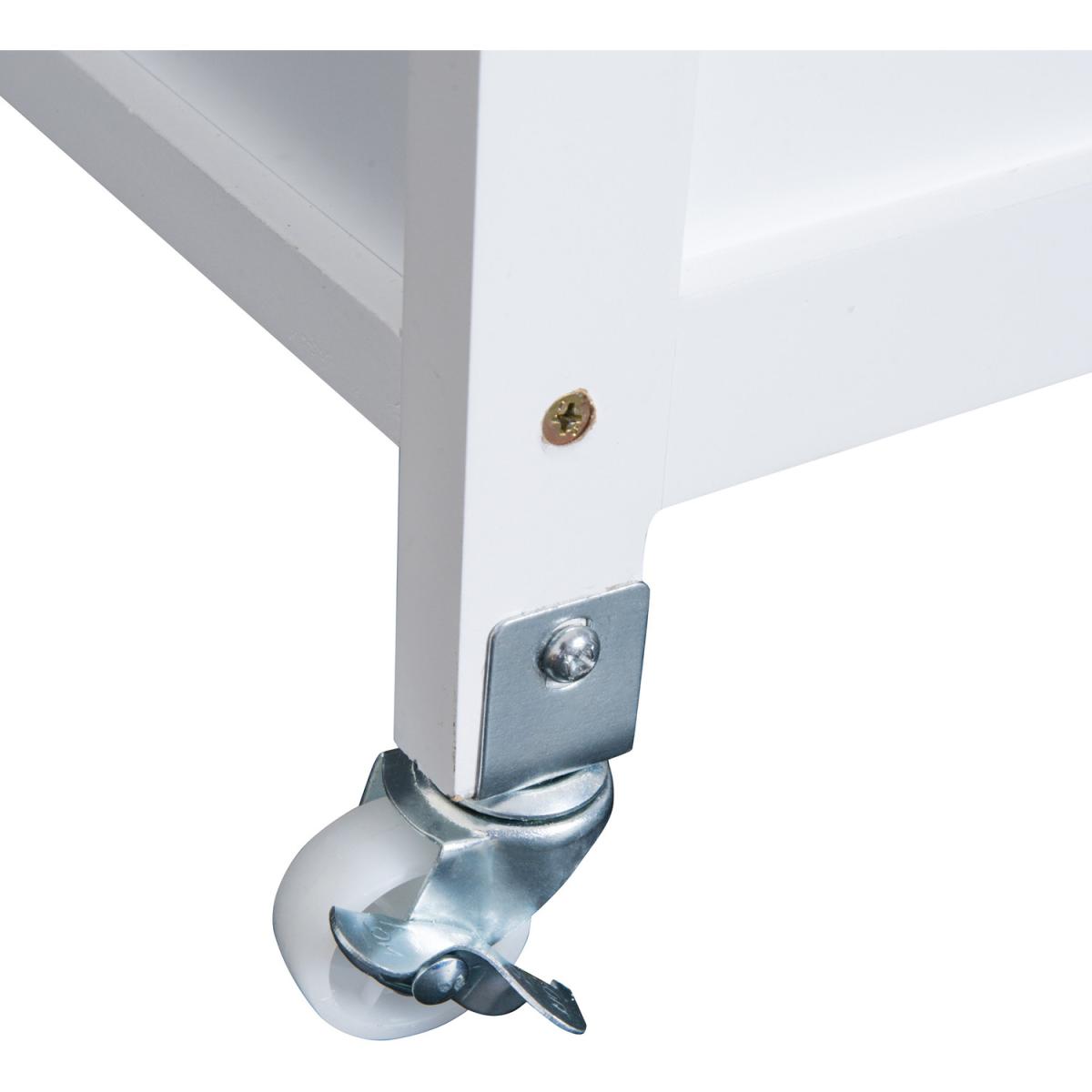 I love the way the rolling trolley adds a functional yet stylish element to a kitchen, especially in contemporary or minimalist interiors. Its white finish keeps things bright and versatile, making it easy to integrate into various colour schemes. This trolley works particularly well in open-plan kitchens or as a mobile bar station for entertaining. Practical tips include using it to store glassware, bottles or favoured kitchen tools, with the top surface perfect for prepping or serving drinks. You can also personalise it with a few decorative accents like plants or vintage trayware to soften its utilitarian look while keeping it refreshingly modern.