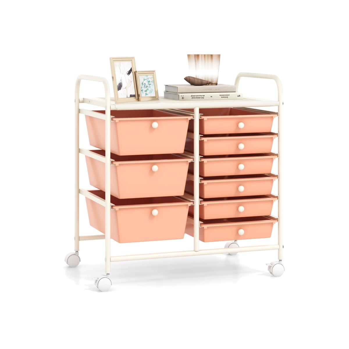 Rolling Storage Cart with 9 Drawer - Light Pink