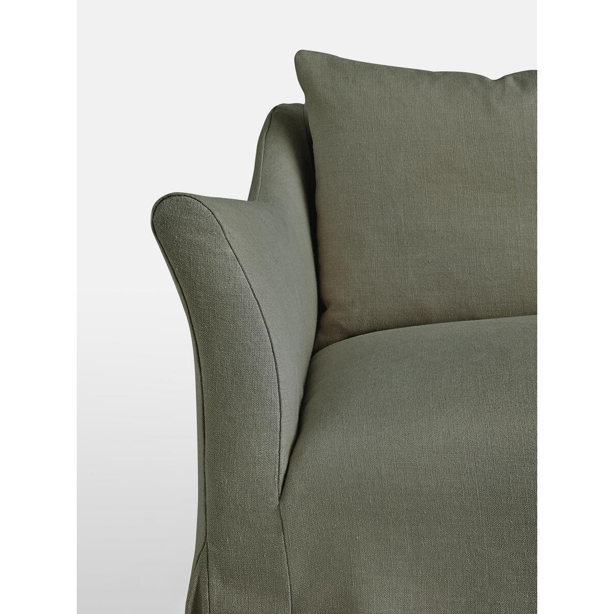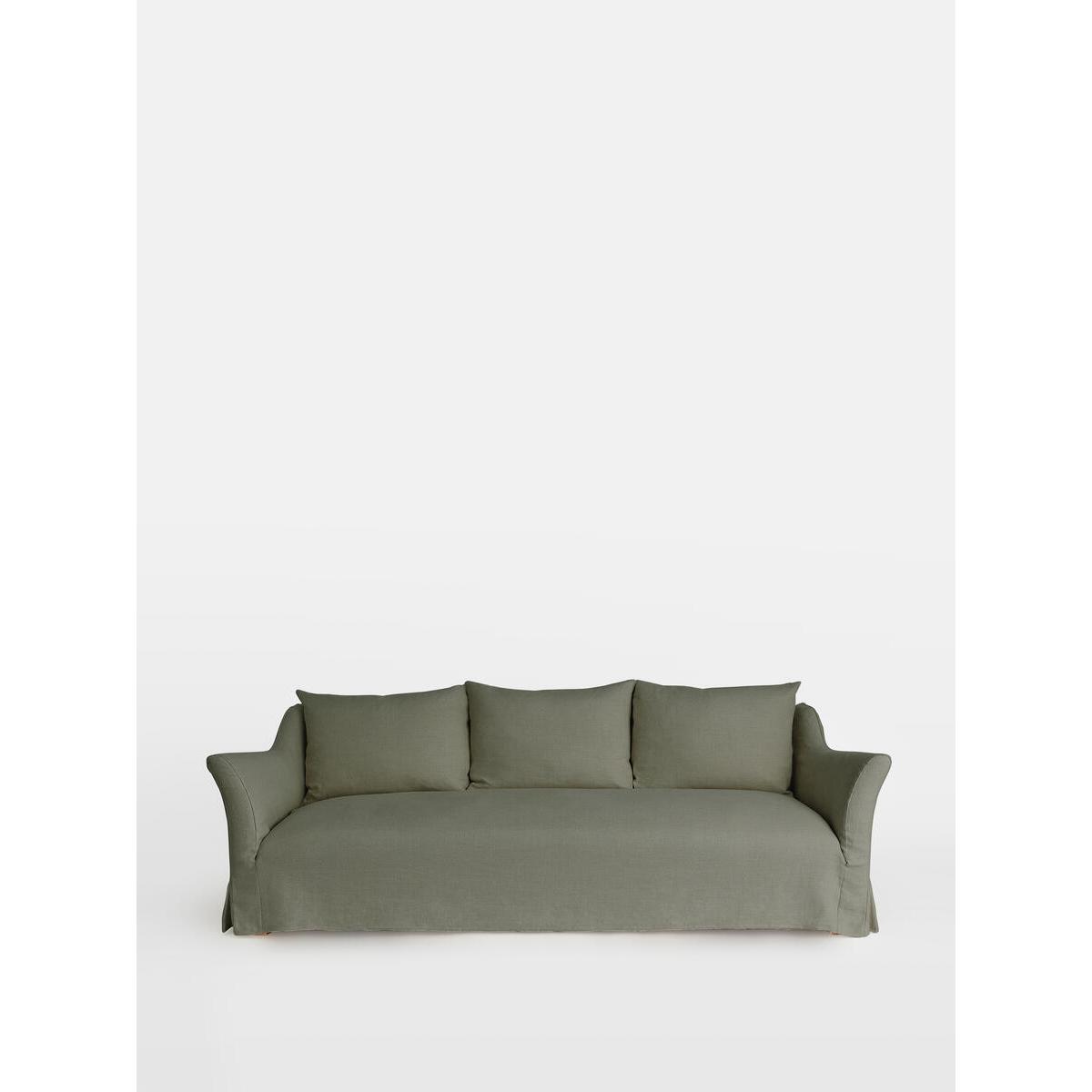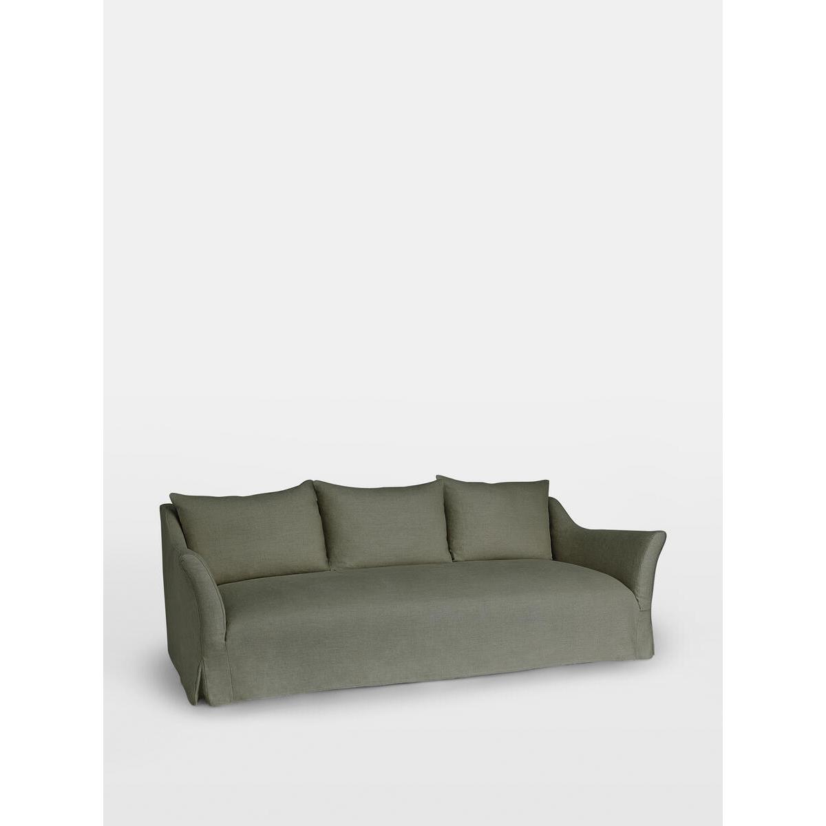 Taking its cues from the open-plan barn spaces at Soho Farmhouse, our three-seater Roma sofa features a tailored, pure linen slip cover with a wide, fixed seat and flared arms. A great choice for casual, relaxed lounging. Tailored linen slip cover 100% pure linen Deep fixed seat Legs concealed by slip cover Flared arms Inspired by Soho Farmhouse
