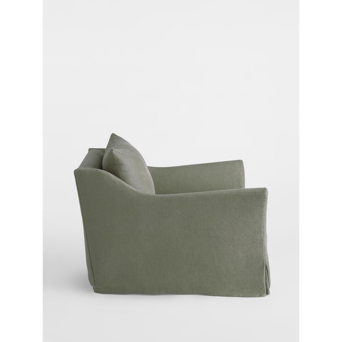 This linen loveseat in Loden is a fantastic addition for creating a relaxed yet polished living space. I love its understated silhouette and soft, natural tone, which lends itself well to both modern and classic interiors. It works particularly well in open-plan living areas or cosy reading nooks where comfort is key. For styling tips, pair it with textured cushions and layered throws to add depth, or incorporate earthy tones and vintage accents for a more eclectic feel. This piece's neutral hue makes it versatile, so it can be easily integrated with statement pieces or kept as a subtle backdrop for more colourful accessories. It's a practical choice for those seeking comfort without sacrificing style.