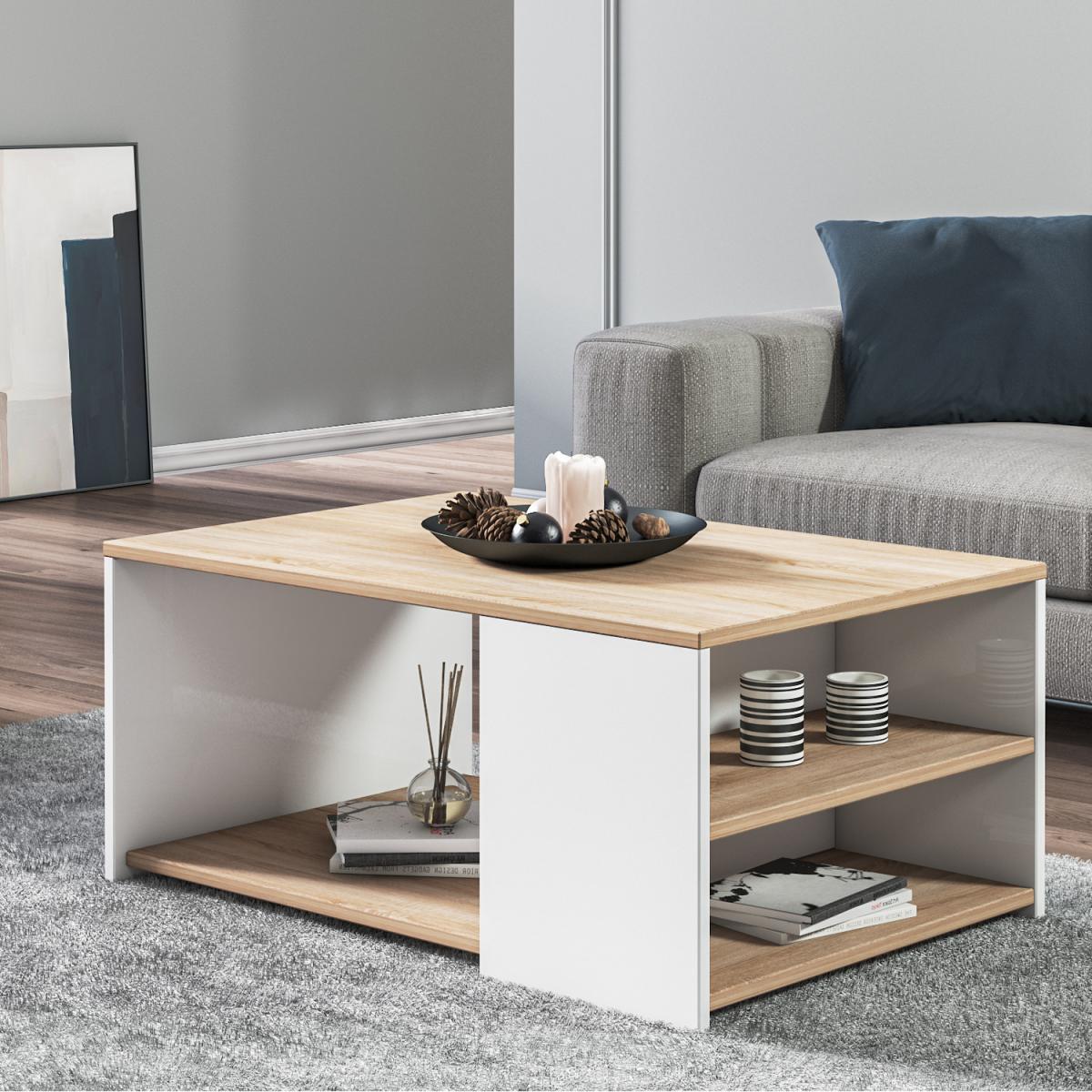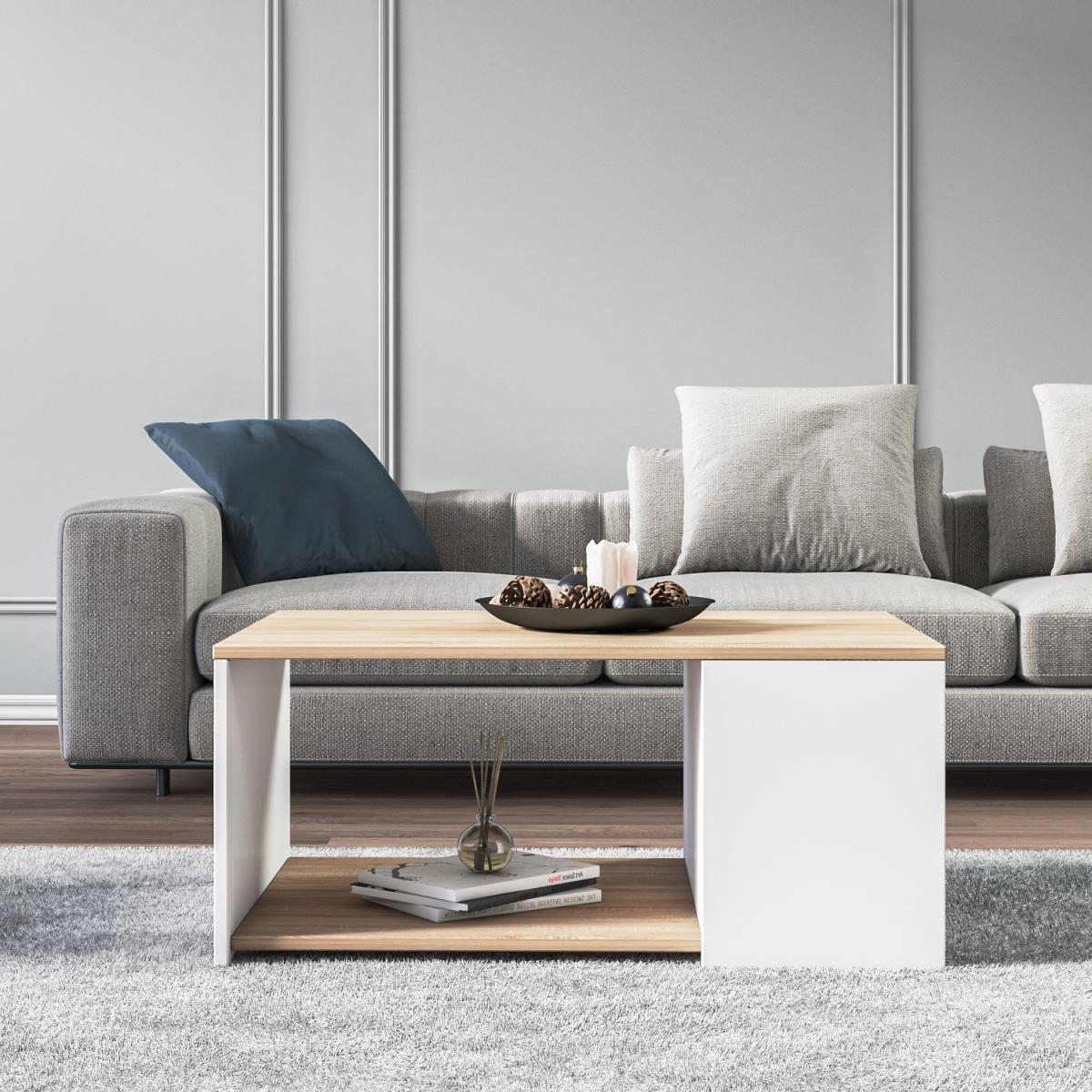 Roma Modern Living Room Oak and White Coffee Table with Storage - Oak & White