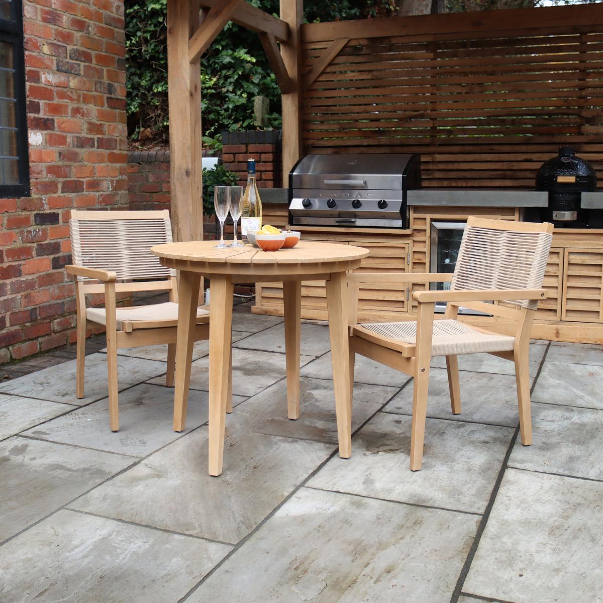 I love this set because of its natural, relaxed vibe that works beautifully in both modern and rustic garden settings. The Roma Rope Chair bistro style is versatile and great for creating a casual outdoor dining area that doesn't feel too formal. It's practical too, with its lightweight yet sturdy design, making it easy to move around as needed. Styling tip: pair it with neutral or pastel outdoor cushions to add comfort, and consider mixing in some colourful planters or outdoor textiles to bring in a splash of personality. This set fits well in both contemporary patios and more traditional gardens, making it a flexible choice for a variety of outdoor spaces.