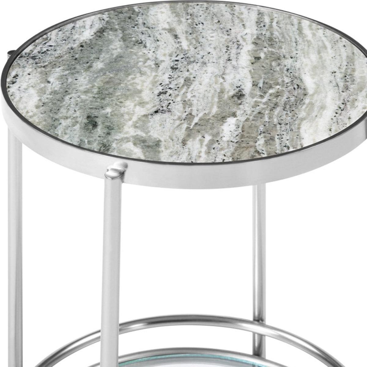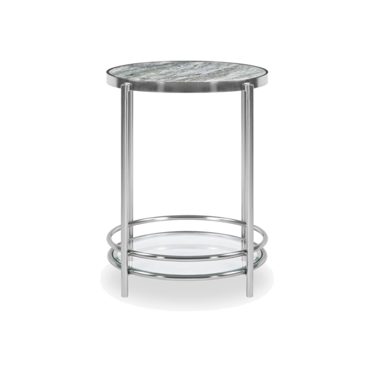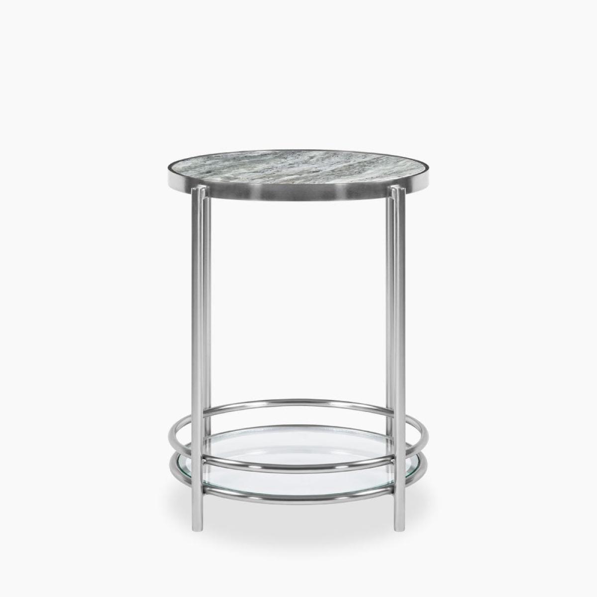 Add a luxe feel in your living room with the Roma side table. Featuring a round grey marble top, chrome metal frame and a glass shelf, the Roma offers a practical and stylish solution. Note the Art Deco inspired design accents of this range. View The Roma Range This product is handcrafted, making each piece unique with naturally occurring texture, pattern, and colour. The natural materials used makes this product special and unique to you.