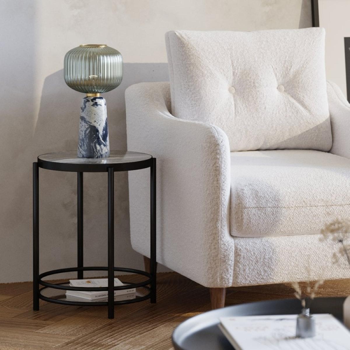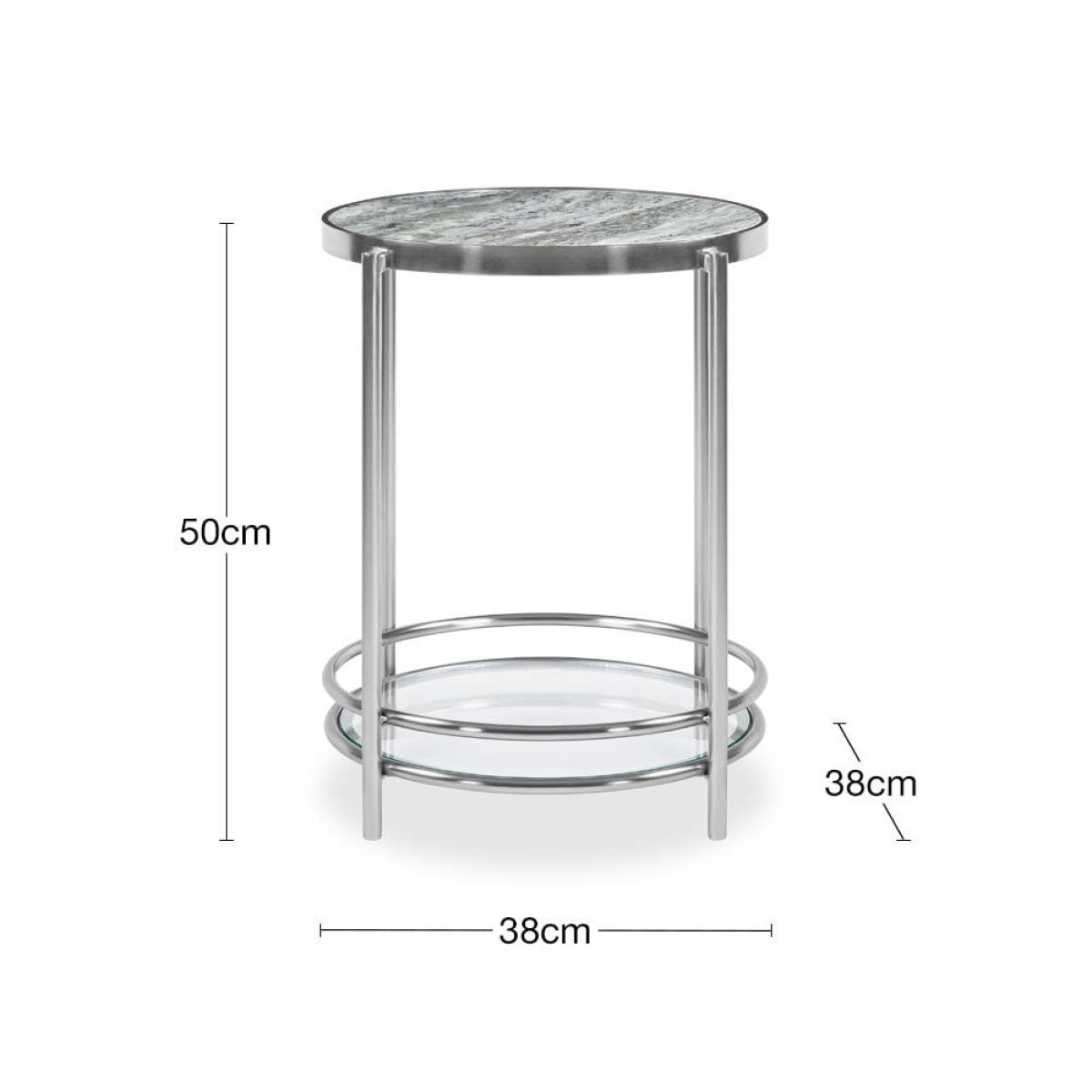I love this little side table for its sleek combination of grey marble and chrome, which makes it versatile enough to suit both modern and classic interiors. It works particularly well in contemporary or minimalist spaces, adding a touch of sophistication without overwhelming the room. Practical styling tips include using it as a standalone statement piece, or layering with a small lamp, books, or decorative objects to create an inviting vignette. Its compact size also makes it ideal for corner placement or next to a sofa, providing both functionality and style in any living or dining area.