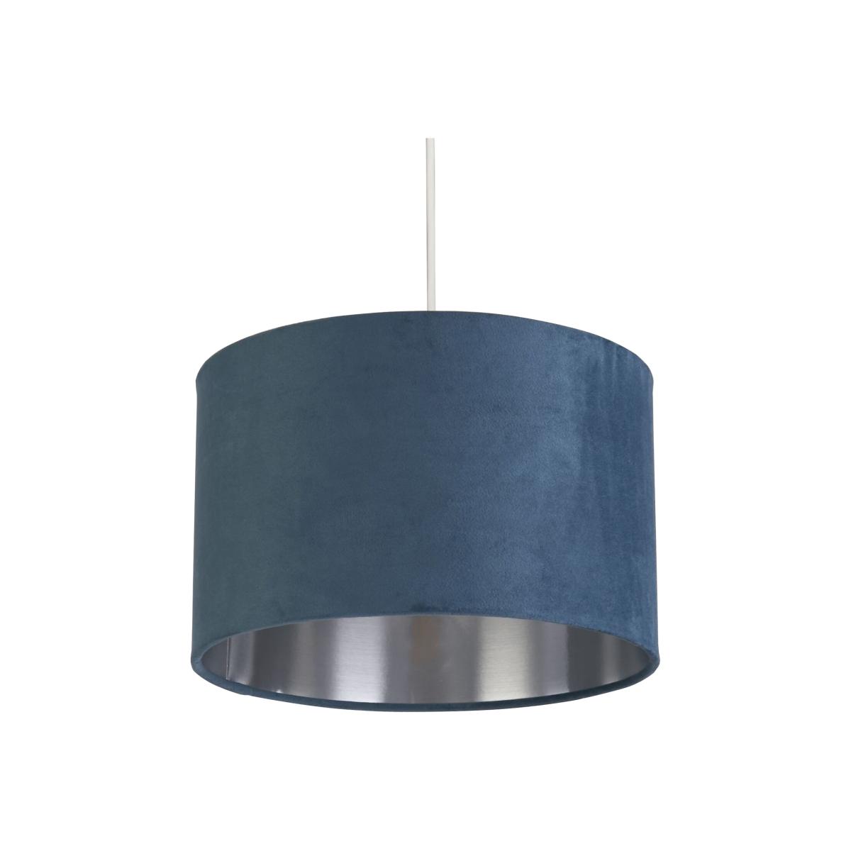 This sophisticated teal velvet 27cm shade with metallic silver inner is designed to suit a range of interior decor styles. Suitable as a celling or on a lamp base due too its reversible gimble, this shade will elevate any room