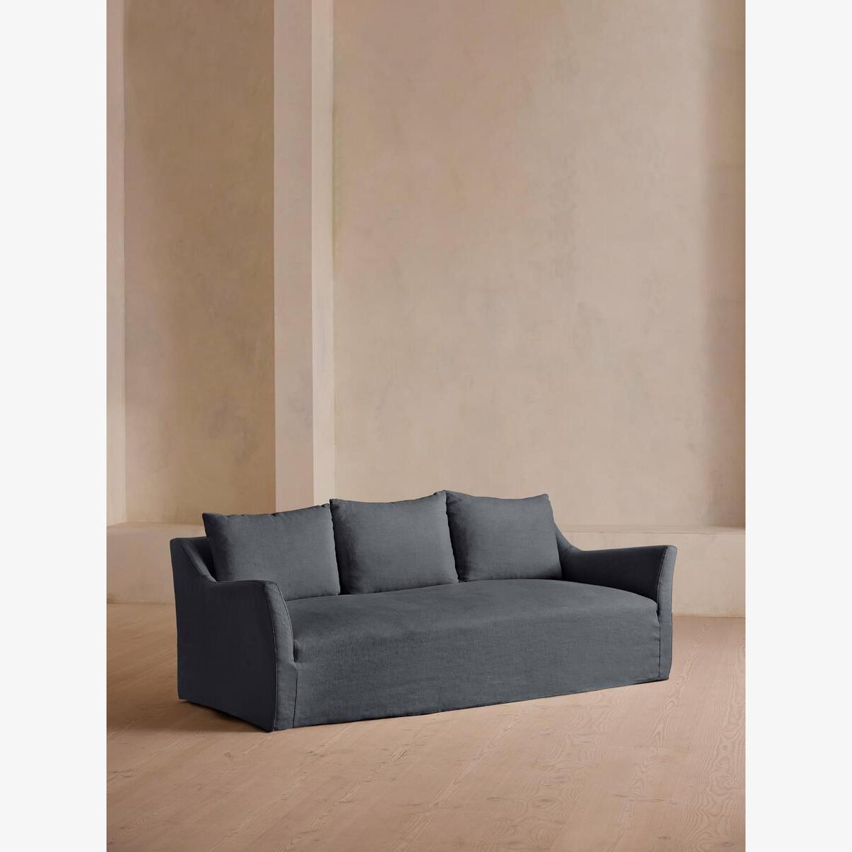 The Roma three-seater sofa in linen indigo is a versatile piece that brings a relaxed yet refined feel to any living space. I love its clean lines and neutral yet rich colour, making it suitable for both contemporary and classic interiors. It works particularly well in neutral-toned rooms where it can serve as a statement piece, or in more eclectic schemes with patterned cushions and throws for a layered look. Practical styling tips include pairing it with understated coffee tables and minimal accessories or adding some textured cushions to enhance comfort. Its compact yet welcoming design makes it ideal for smaller living rooms or family spaces where style doesn’t have to be sacrificed for practicality.