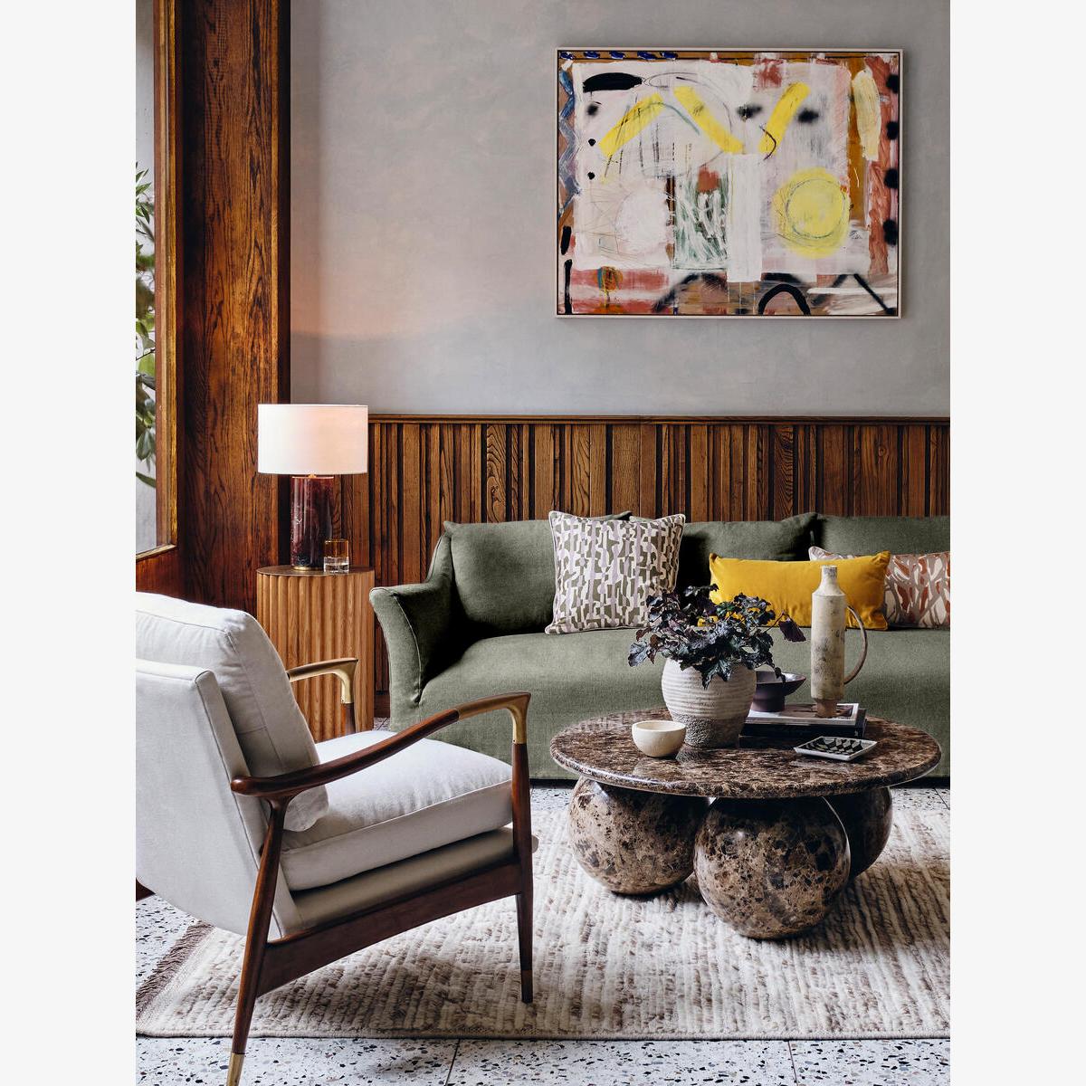 I love this sofa for its versatile, neutral linen fabric in sage, which adds a calming and natural touch to various interiors. It’s perfect for a contemporary, relaxed space or a more eclectic setting-its understated elegance allows it to be styled with anything from textured throws to colourful cushions. Practical tips include pairing it with layered rugs and statement lighting to create an inviting atmosphere, and since it’s a three-seater, it works well in open-plan living areas or family rooms where comfort and style are key. Its understated colour and shape make it easy to accessorise and adapt as your interior evolves.