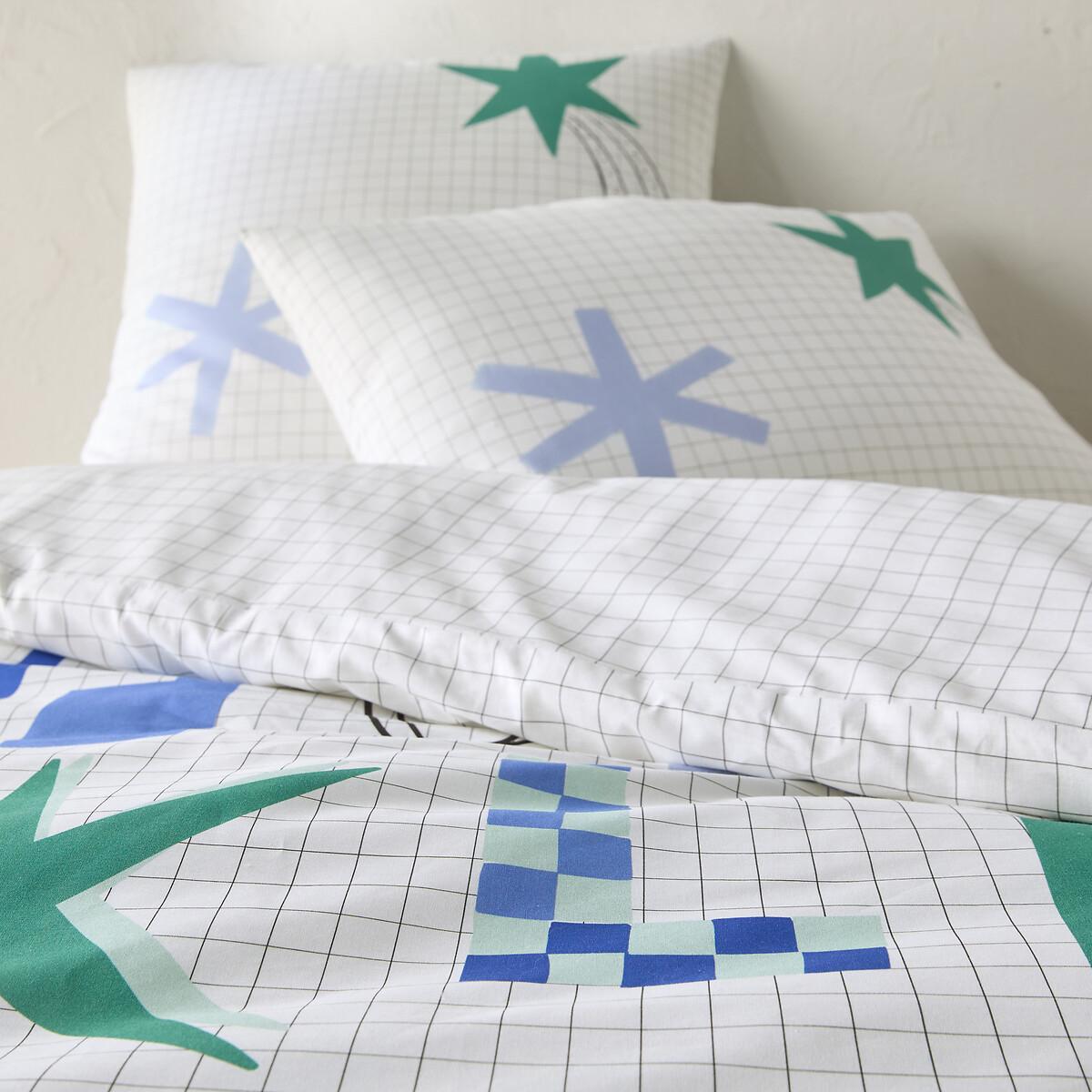 All the letters of the alphabet, on a squared background, appear on the Roman bed linen. This colourful and playful pattern is great for a child's bedroom. Designed by La Redoute Interiors. Cotton is part of our daily lives. We love it for its suppleness and softness. Easy Care, it is ideal for the beds of young and old alike!Product Details • 100% cotton • 50% virgin cotton, 50% recycled coton • 144 thread count • Front with alphabet pattern on a checkered background, back with a checkered pattern • Straight buttoned hem Match this item with the rest of the bedding in the range for a stylish bedroom. And you can mix and match it with different colours and styles from our other bedding ranges when you want to change things up and create your own unique look. Care Advice • Machine washable at 40°CSizes • 140 x 150cm: Adjustable bed • 140 x 200cm: Single • Recycled cotton. Using recycled cotton is all about conserving resources and reducing waste. • OEKO-TEX® Standard 100. Standard 100 certification by OEKO-TEX® tests textile products for harmful substances via an independent, international label.