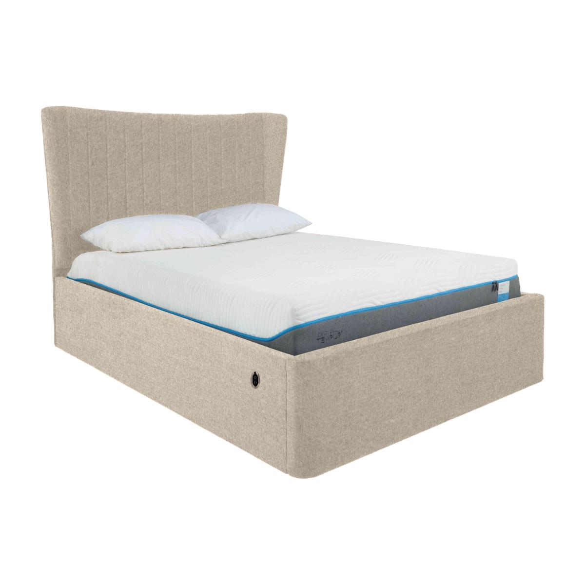 Looking for a statement bed frame with a sophisticated twist? The Roman bed frame range delivers a traditional upholstered finish alongside striking contemporary proportions. The range includes a bed frame and an ottoman bed frame with built-in storage, and both bed frames feature that gorgeous integrated headboard – tall, winged and with meticulous vertical fluting. Available in an extensive choice of upholstery fabrics, the Roman bed frame range is handcrafted in the UK exclusively for Furniture Village. With a stylish design and plenty of hidden storage, the Roman ottoman bed frame is everything you’ve wanted in a bed. From the beautiful headboard to the powered lift mechanism, it truly is a thing of beauty. Why you'll love it Stylish upholstered ottoman bed frame at a great-value price. Blends traditional upholstery design with bold with modern proportions. High winged headboard has vertical fluting. End-lift ottoman design hides a large underbed compartment. Electric powered lift mechanism for easy access. Supportive sprung base of beech wood slats encased in a metal frame. Available in an extensive range of upholstery fabrics. Choose double, king, or super king bed size. Entirely handcrafted in the UK for Furniture Village. What you need to know Mattress not included. Please take care when opening and closing ottoman. Clean weekly using a soft brush or vacuum with the curtain attachment. Professional cleaning advised for oil- and grease-based stains. Some fabrics can show wear on areas of more use or in direct sunlight. Available as a standard bed frame.