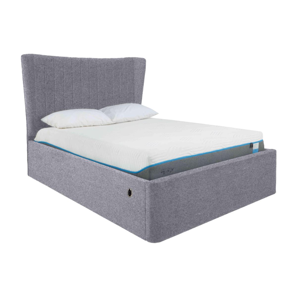 Looking for a statement bed frame with a sophisticated twist? The Roman bed frame range delivers a traditional upholstered finish alongside striking contemporary proportions. The range includes a bed frame and an ottoman bed frame with built-in storage, and both bed frames feature that gorgeous integrated headboard – tall, winged and with meticulous vertical fluting. Available in an extensive choice of upholstery fabrics, the Roman bed frame range is handcrafted in the UK exclusively for Furniture Village. With a stylish design and plenty of hidden storage, the Roman ottoman bed frame is everything you’ve wanted in a bed. From the beautiful headboard to the powered lift mechanism, it truly is a thing of beauty. Why you'll love it Stylish upholstered ottoman bed frame at a great-value price. Blends traditional upholstery design with bold with modern proportions. High winged headboard has vertical fluting. End-lift ottoman design hides a large underbed compartment. Electric powered lift mechanism for easy access. Supportive sprung base of beech wood slats encased in a metal frame. Available in an extensive range of upholstery fabrics. Choose double, king, or super king bed size. Entirely handcrafted in the UK for Furniture Village. What you need to know Mattress not included. Please take care when opening and closing ottoman. Clean weekly using a soft brush or vacuum with the curtain attachment. Professional cleaning advised for oil- and grease-based stains. Some fabrics can show wear on areas of more use or in direct sunlight. Available as a standard bed frame.