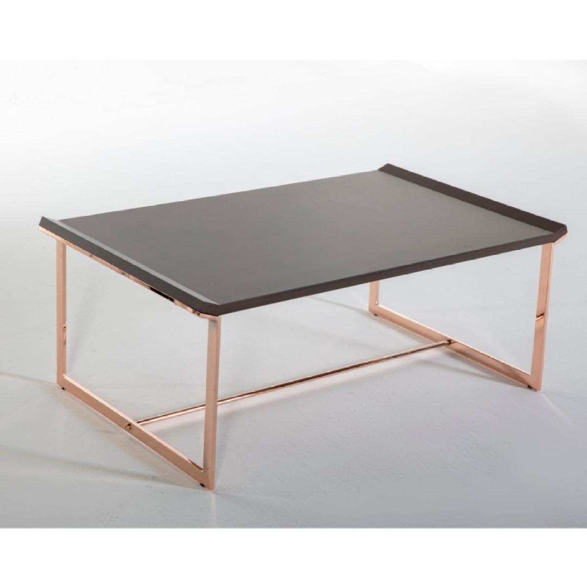 Roman coffee table with matte grey tabletop and rose gold metal legs.. With its elegant matte grey tabletop and luxurious rose gold metal legs, this coffee table exudes sophistication and style. The juxtaposition of the cool grey surface with the warm rose gold accents creates a visually stunning contrast, making it a focal point in any living space. Whether you're enjoying a morning coffee or entertaining guests, the Roman Coffee Table adds a touch of glamour to your home decor. Elevate your living room and make a statement with the timeless elegance of the Roman Coffee Table..