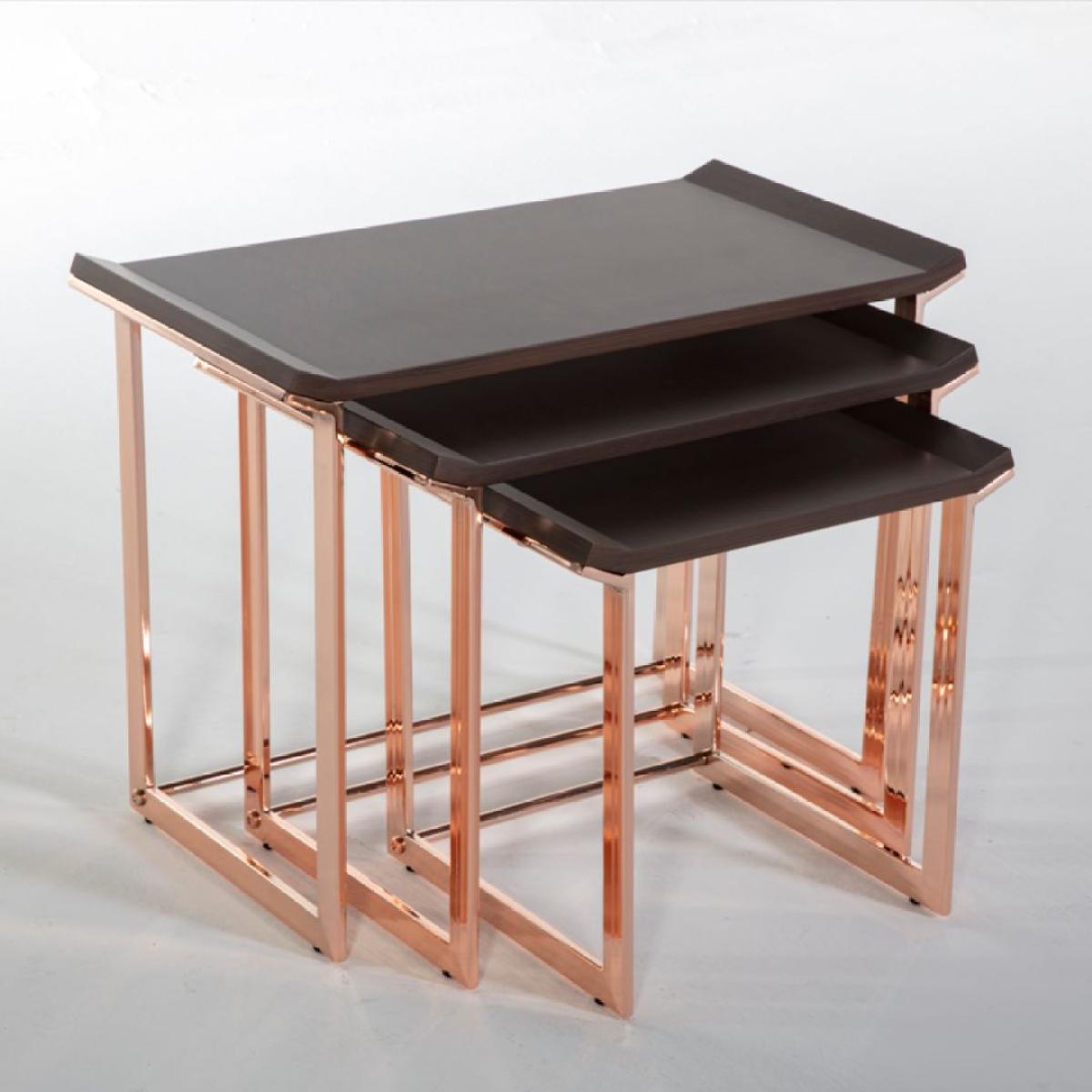 I love this nest of tables for its sleek combination of matte grey tops with chic rose gold frames-it's a modern twist on a timeless piece. It works particularly well in contemporary and glam interiors, adding both style and practicality as a flexible surface solution. For styling, I recommend using the smallest table for delicate items like a vase or table lamp, while the larger ones can hold books or trays. This setup is perfect for creating an inviting space in your living room or lounge, allowing versatility without compromising on design. Keep it uncluttered to highlight the beautiful metallic accents and enjoy the functional elegance it brings.