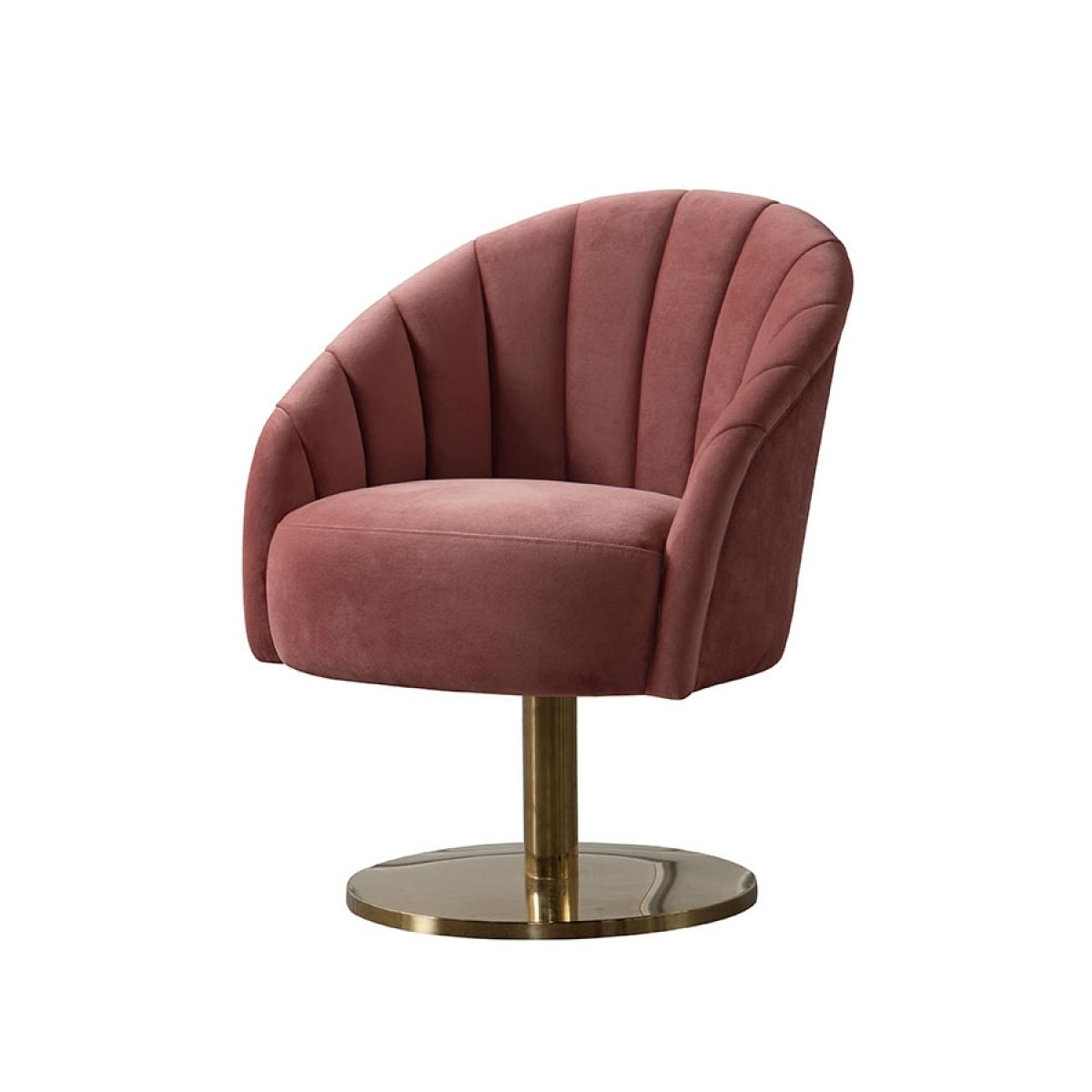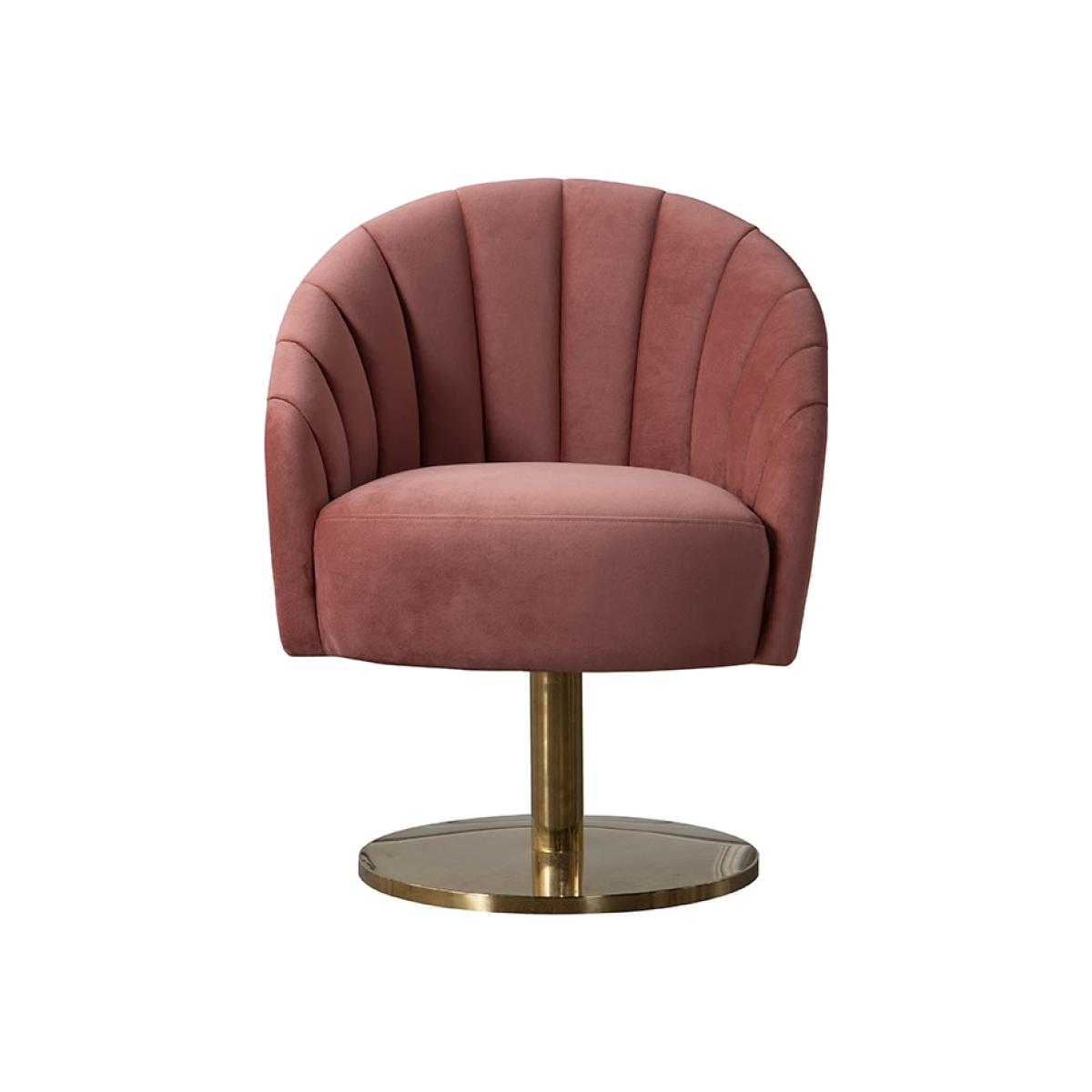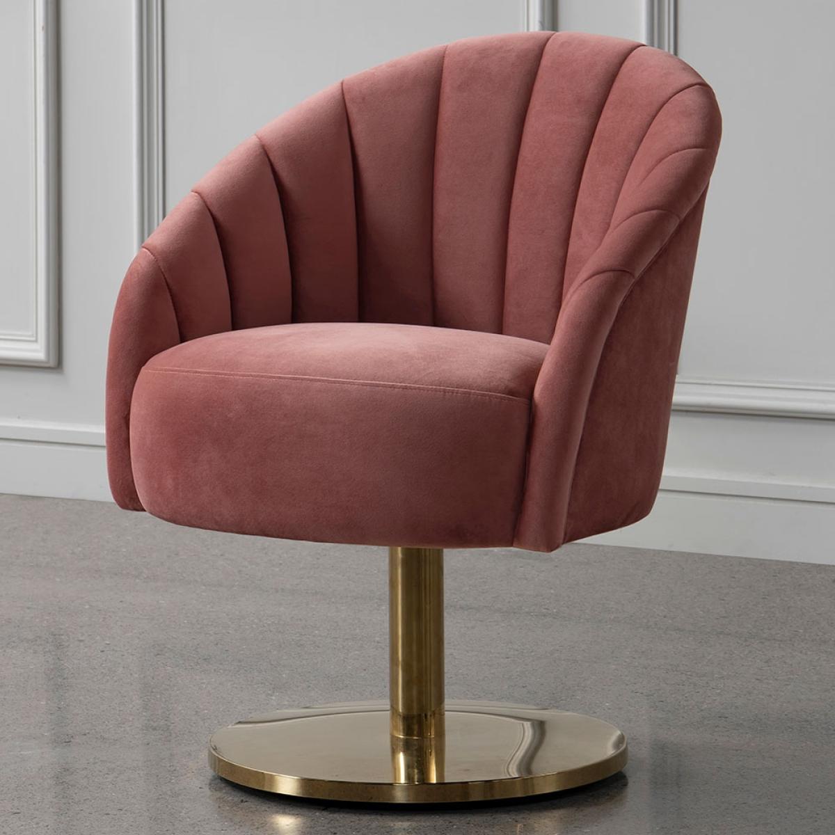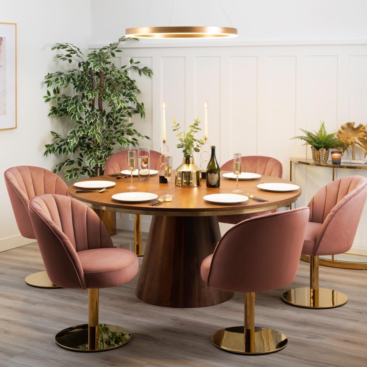 I love this blush pink dining chair for its soft, inviting colour and contemporary design. It works well in both modern and eclectic interiors, adding a touch of elegance without feeling overly formal. The plush, scalloped detailing lends a cosy yet sophisticated vibe, making it perfect for a stylish dining room or even a luxe desk chair. For styling tips, pair it with neutral or metallic accents to let the colour pop, and consider combining it with other blush or muted tones for a cohesive look. Its versatile size and shape also mean it can be used as a statement piece in a lounge corner or as part of a mixed-material table setting for added texture and interest.