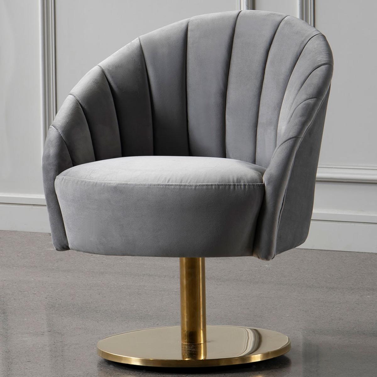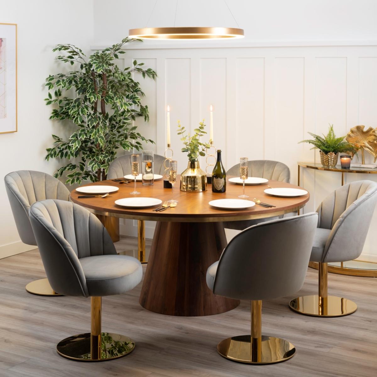 I’m a fan of this dove-grey swivel chair for its smart blend of soft upholstery and a brass-tone base - it adds subtle luxury without shouting. Its shell-style back and channel detailing suit Scandi-inspired schemes or pared-back modern spaces, while the muted hue works well against natural timber or dark-painted walls. For styling, tuck it under a pale oak table to keep the palette light, then layer in a textured linen napkin or small wool cushion in off-white or charcoal for contrast. It also makes a neat occasional chair in a hallway or dressing area.