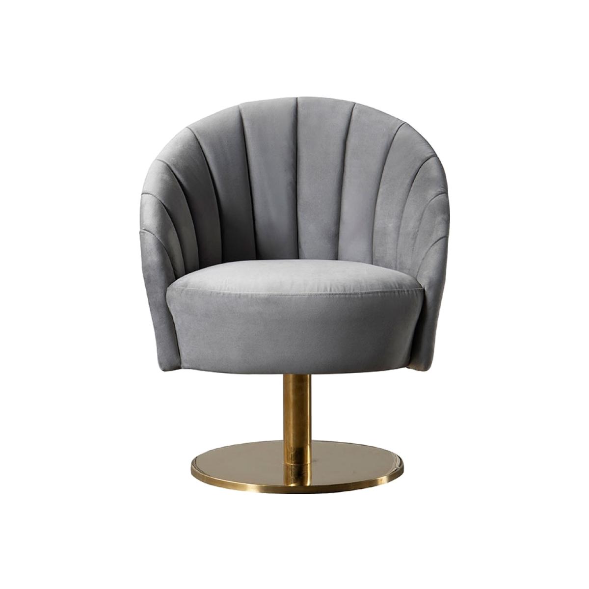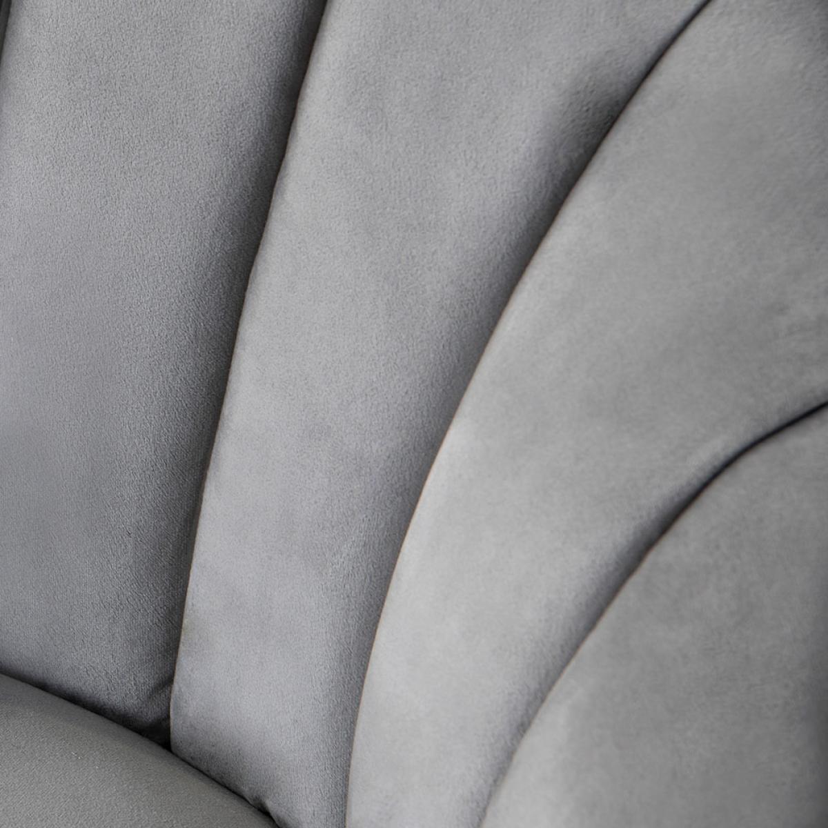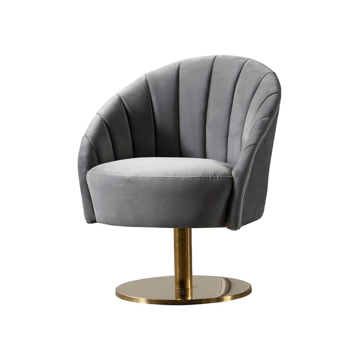 A lavish and indulgent chair, intended for the most glamourous of dining areas. Sprung seat with comfortable foam and fibre filled top. Distinctive fluted upholstery. Velvet fabric. Brushed brass swivel base.