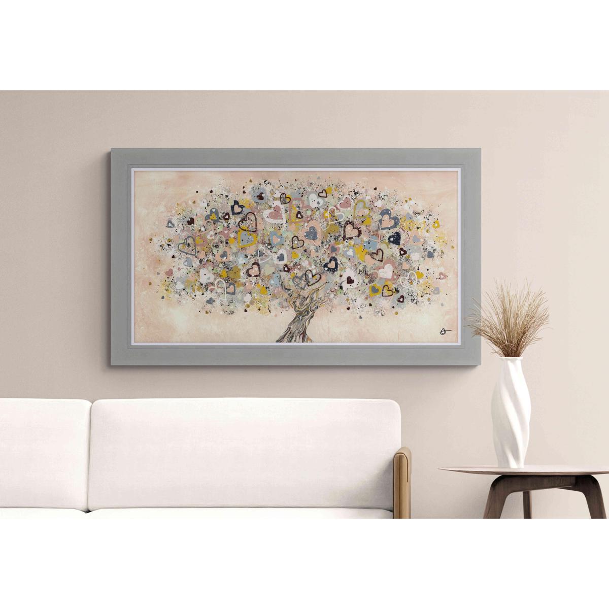 Bring warmth, light and vibrancy to any feature wall with this lovely hand finished framed picture, reproduced from an original Sara Otter work. Why you'll love it Simply stunning – this framed picture teems with life and movement. Contemporary style. Carefully reproduced from an original artwork by Sara Otter. In a warm and sophisticated palette of blush pink and duck egg blue. Hand finished with acrylics for a vibrant, textured look. Presented in a sleek grey frame. Made in the UK. An online exclusive. This framed picture is part of the Furniture Village wall art collection. What you need to know Supplied with metal hanging fitting and nylon cord. For indoor use only. Wipe clean with a dry cloth. Do not use detergents or cleaning products. Dimensions Height: 71 cm (28 in). Depth: 3 cm (2 in). Width: 121 cm (48 in).