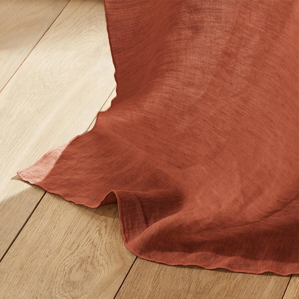 I love this linen curtain for its understated natural texture and versatility. The washed finish lends a relaxed yet refined look, making it suitable for both minimal and more eclectic interiors. It works well in airy living spaces, bedrooms, or even a seaside-inspired scheme. For styling, consider pairing it with neutral or earthy-toned decor - the warm rust colour can ground a room and add warmth. Practical tips include using curtain tiebacks to showcase its beautiful fabric when open, or layering with sheer curtains for extra light diffusion and privacy. Its 100% linen fabric also offers durability and a breathable quality, ideal for creating a cosy, inviting atmosphere.