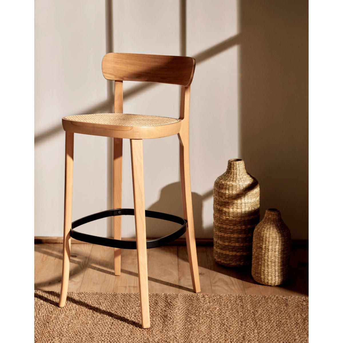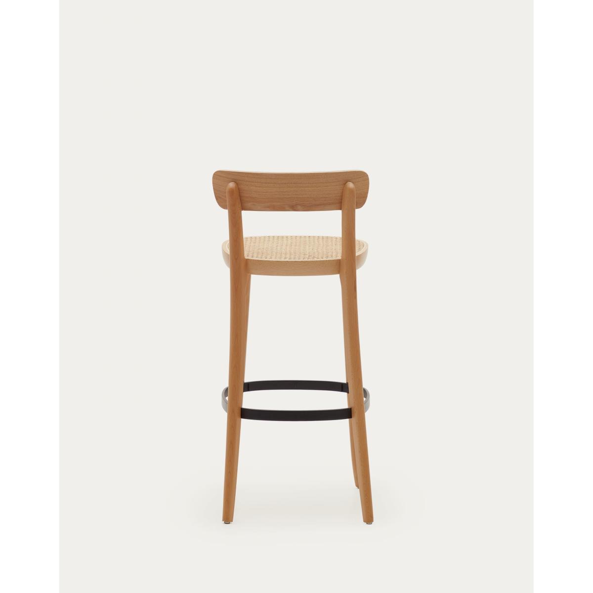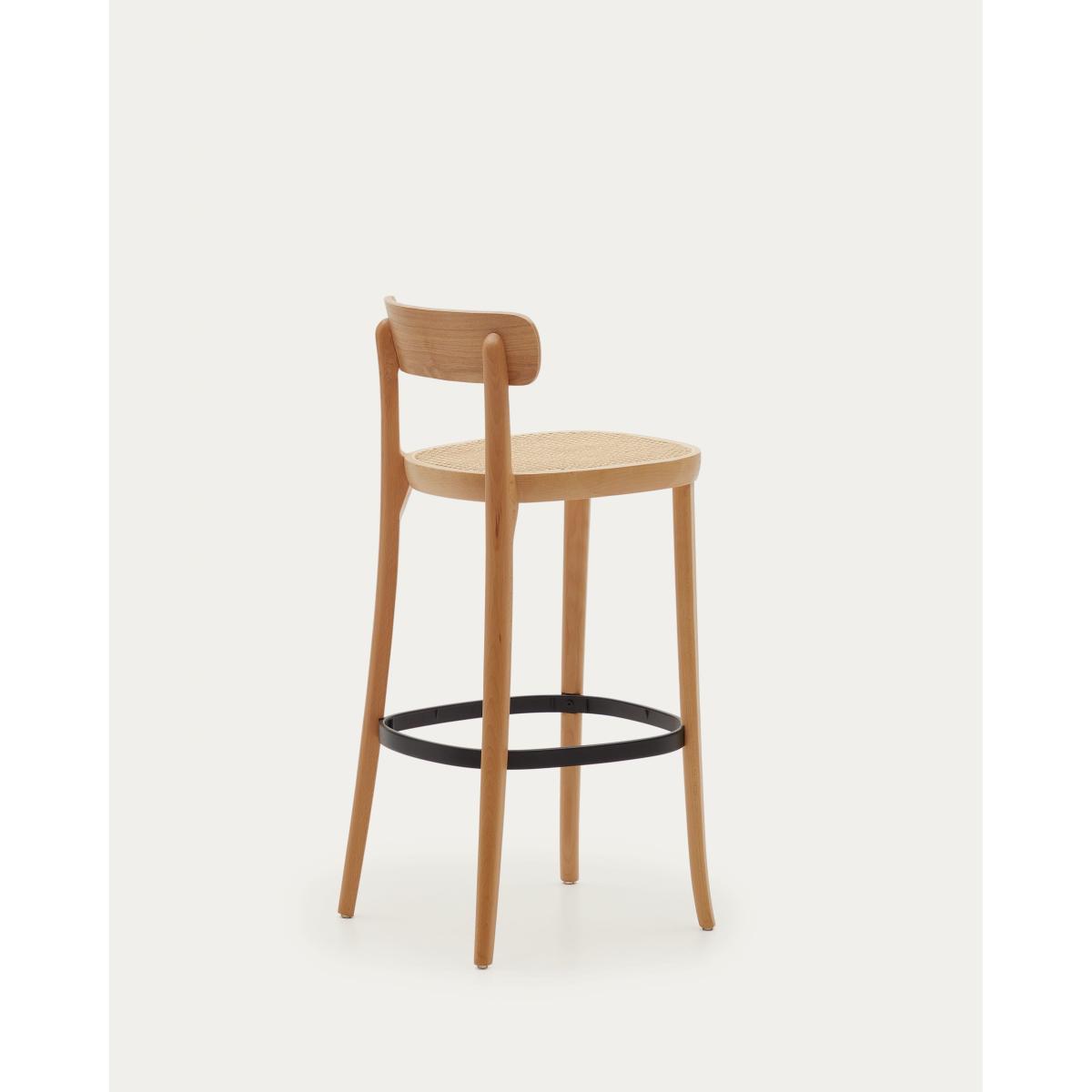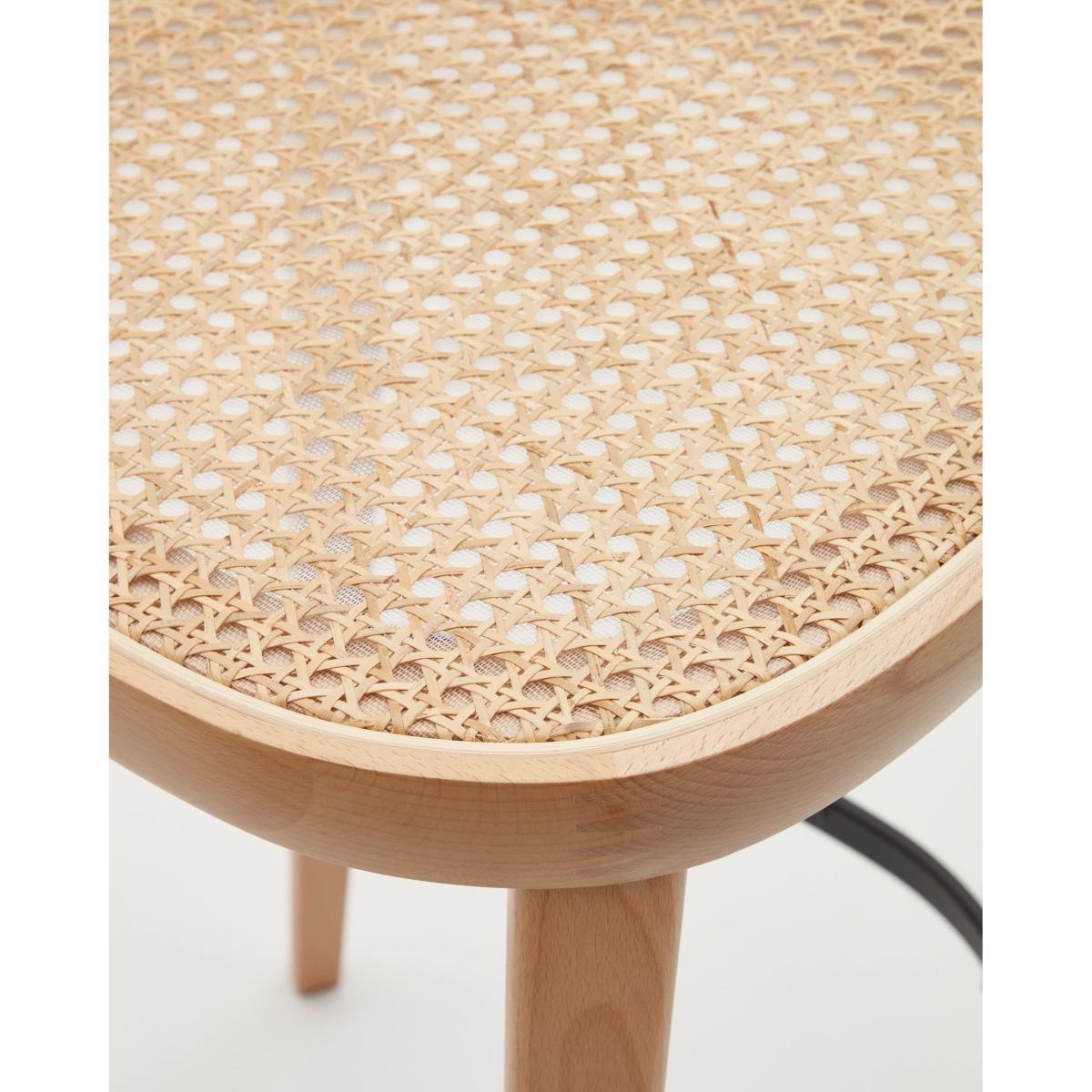 Pair your kitchen table or bar with this solid wood and natural ratan stool. It's designed with a nylon support beneath the seat to keep it firm and stable, so you'll be comfortable during long after lunch and dinner chats.