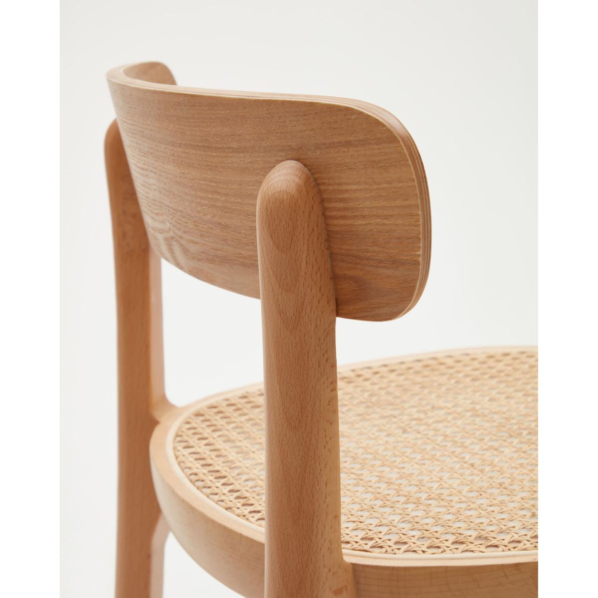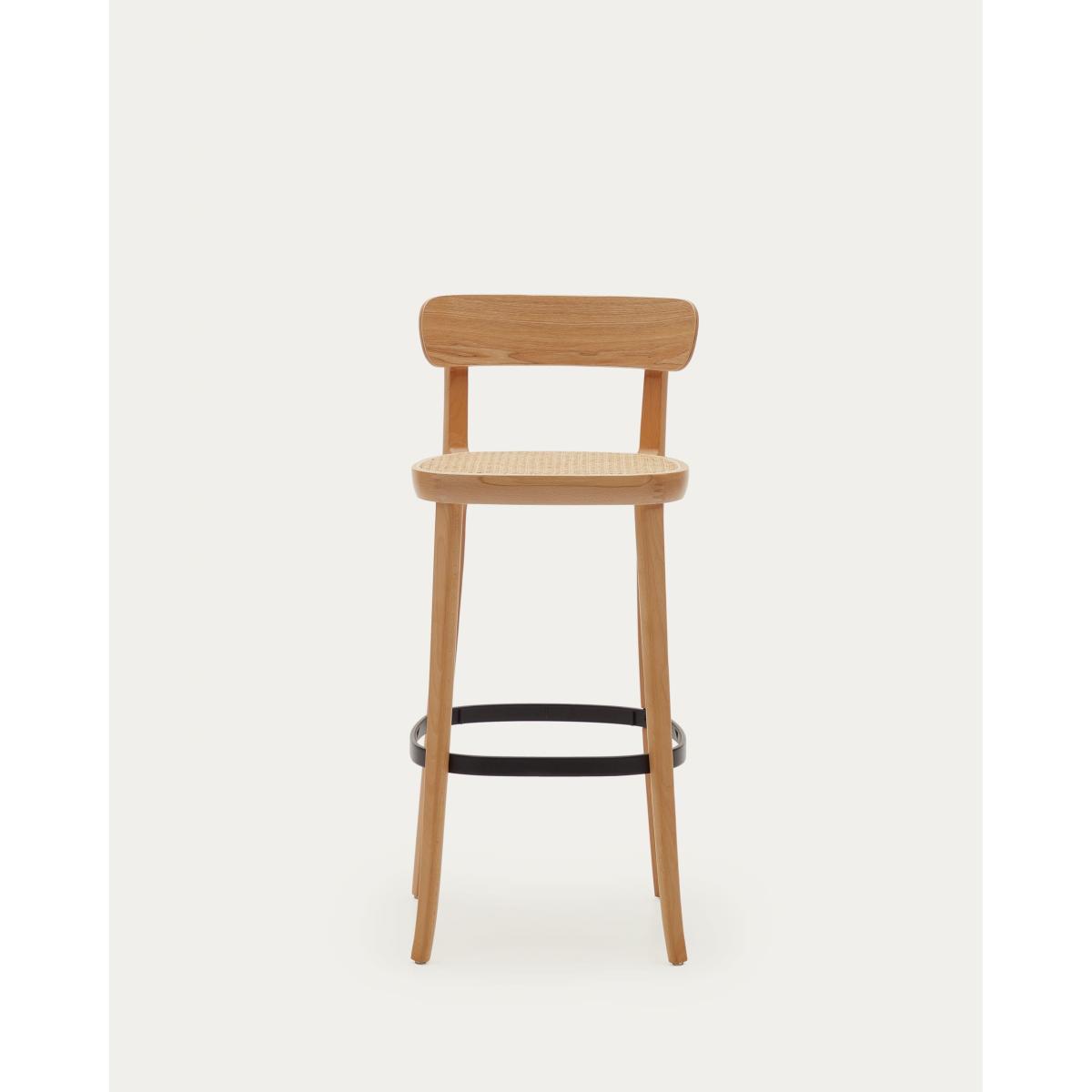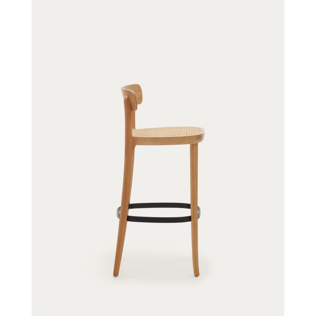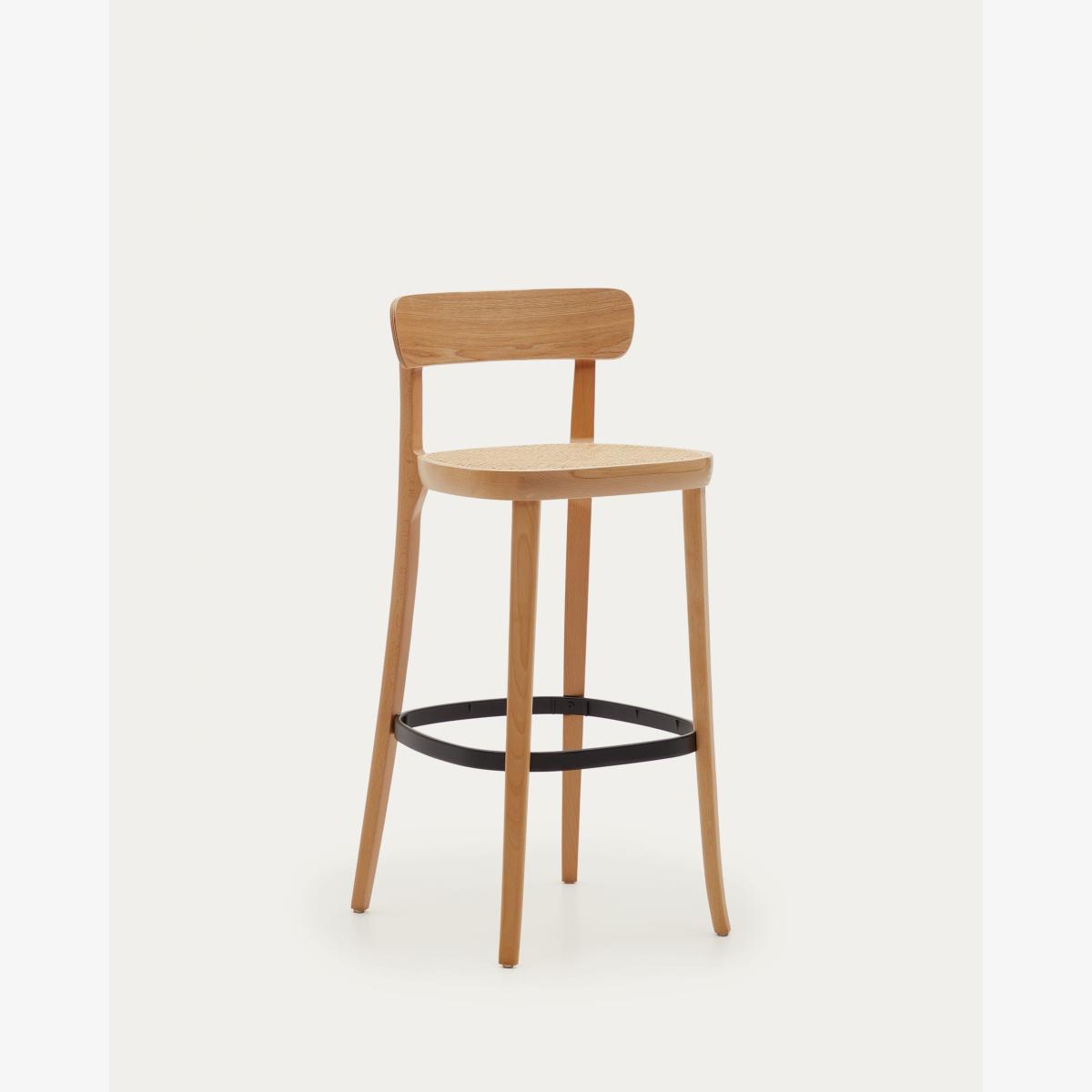 Pair your kitchen table or bar with this solid wood and natural ratan stool. It's designed with a nylon support beneath the seat to keep it firm and stable, so you'll be comfortable during long after lunch and dinner chats.