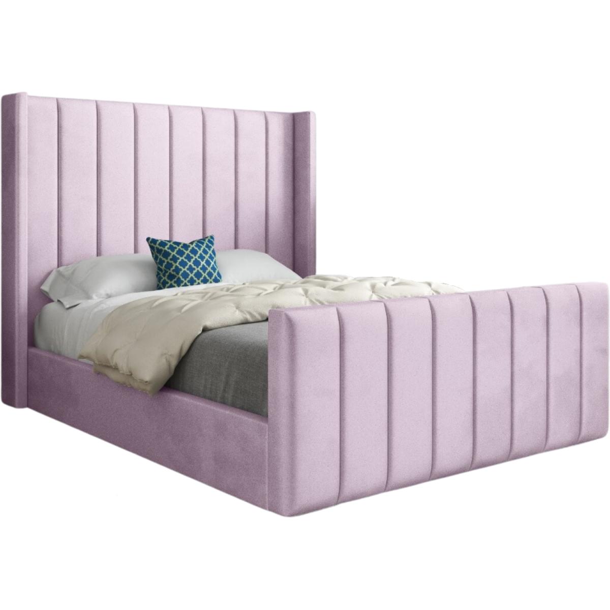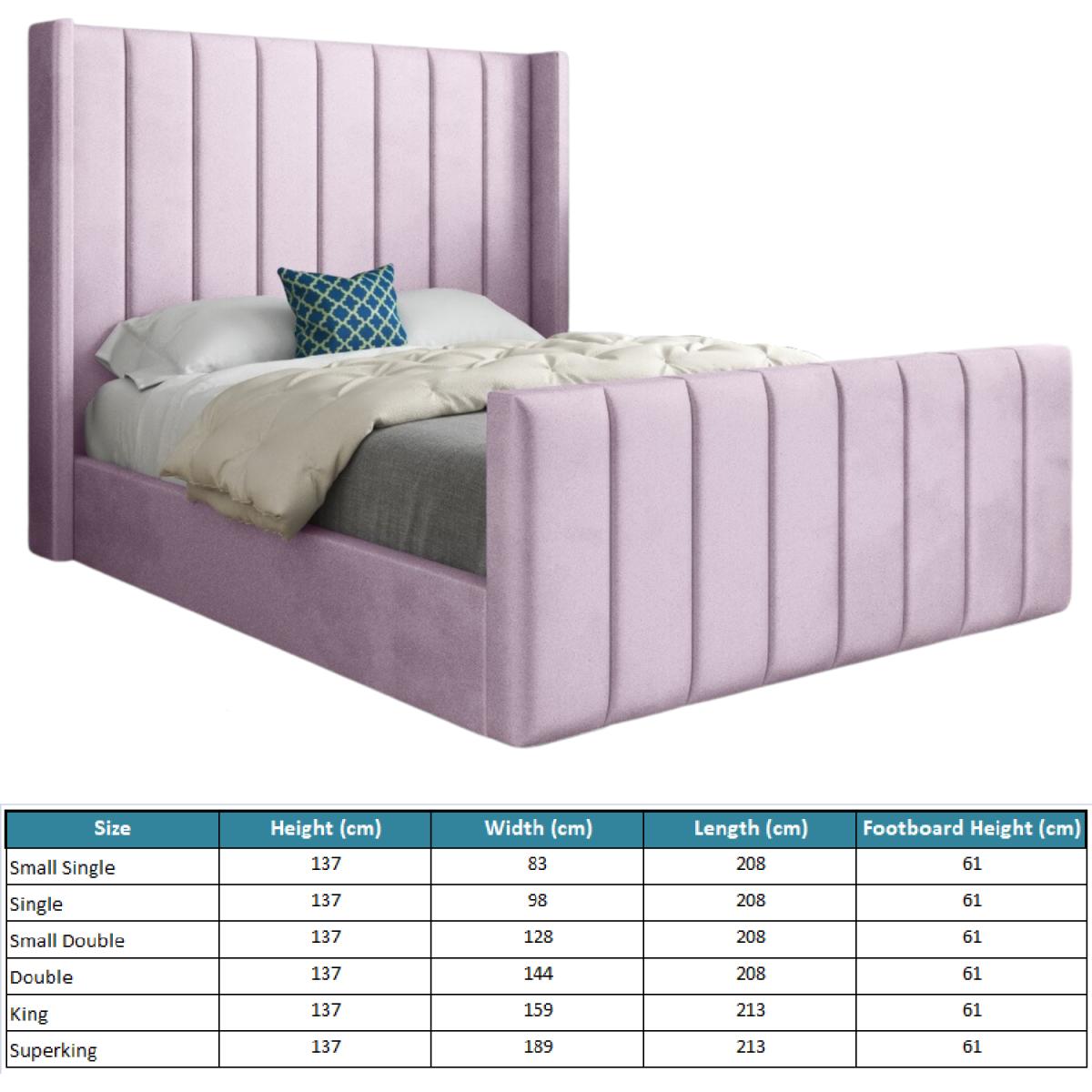 Best seller and stylish choice which accommodates any interior. The Romano bed frame features a tall headboard in a flute style with winged sides and matching flute style on the footboard. The footboard is accented with chrome pipe feet to give it that subtle finishing detail. The linear design is minimal yet effective. The bed benefits from a solid slatted base ideal for mattress ventilation and is very sturdy. The wings protude by 7 inches on either side giving it that luxurious winged look. Contemporary or traditional, this bed seamlessly fits into both style choices and is therefore hugely popular.
