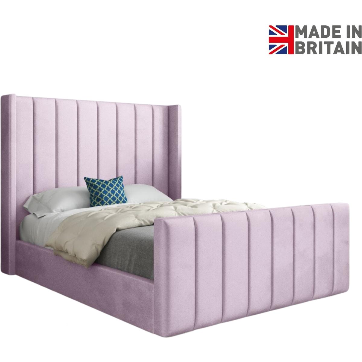 Best seller and stylish choice which accommodates any interior. The Romano bed frame features a tall headboard in a flute style with winged sides and matching flute style on the footboard. The footboard is accented with chrome pipe feet to give it that subtle finishing detail. The linear design is minimal yet effective. The bed benefits from a solid slatted base ideal for mattress ventilation and is very sturdy. The wings protude by 7 inches on either side giving it that luxurious winged look. Contemporary or traditional, this bed seamlessly fits into both style choices and is therefore hugely popular.