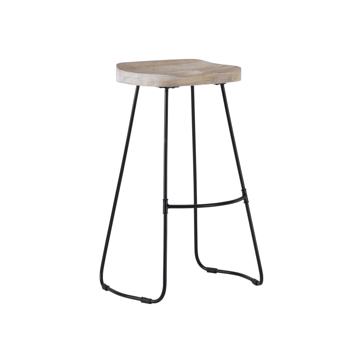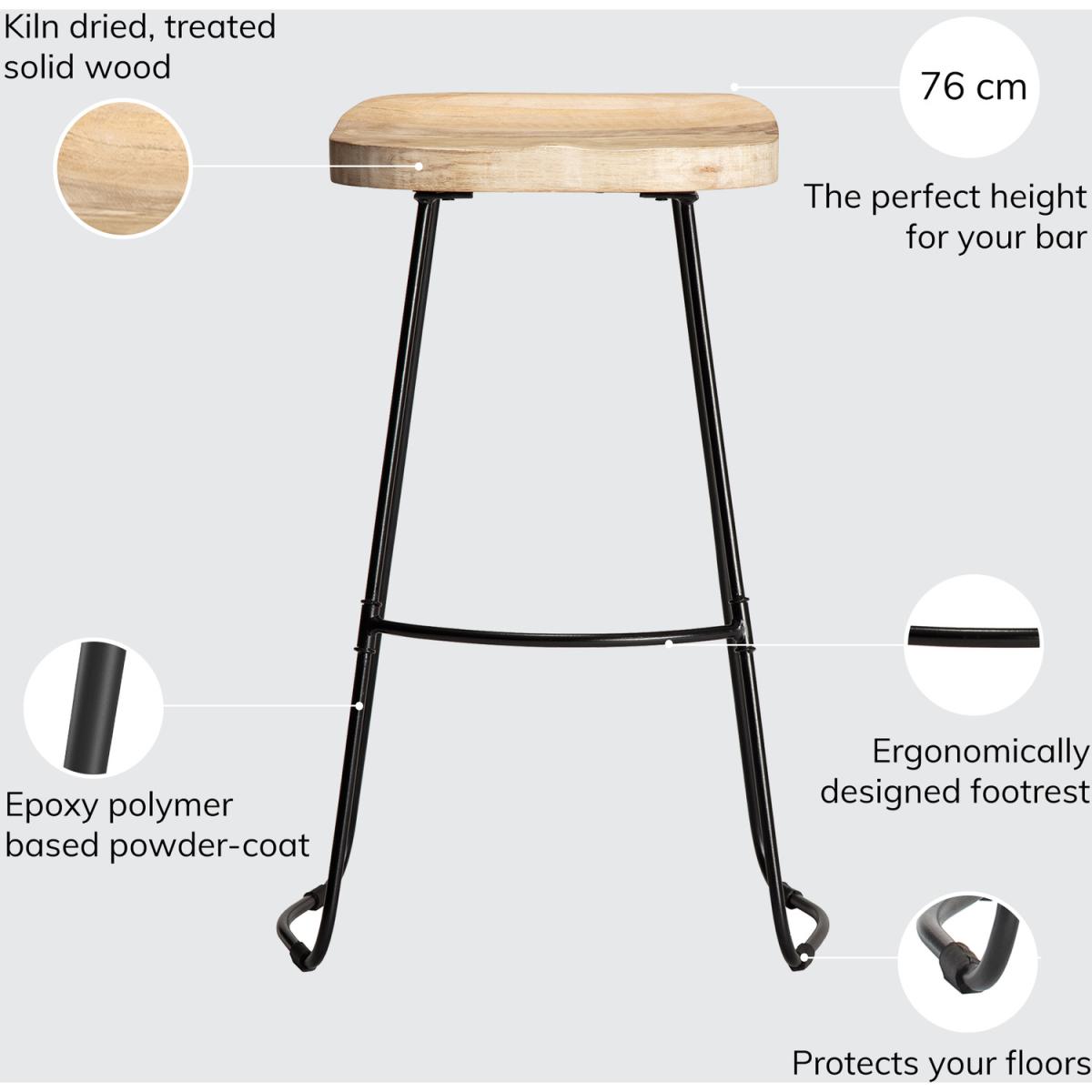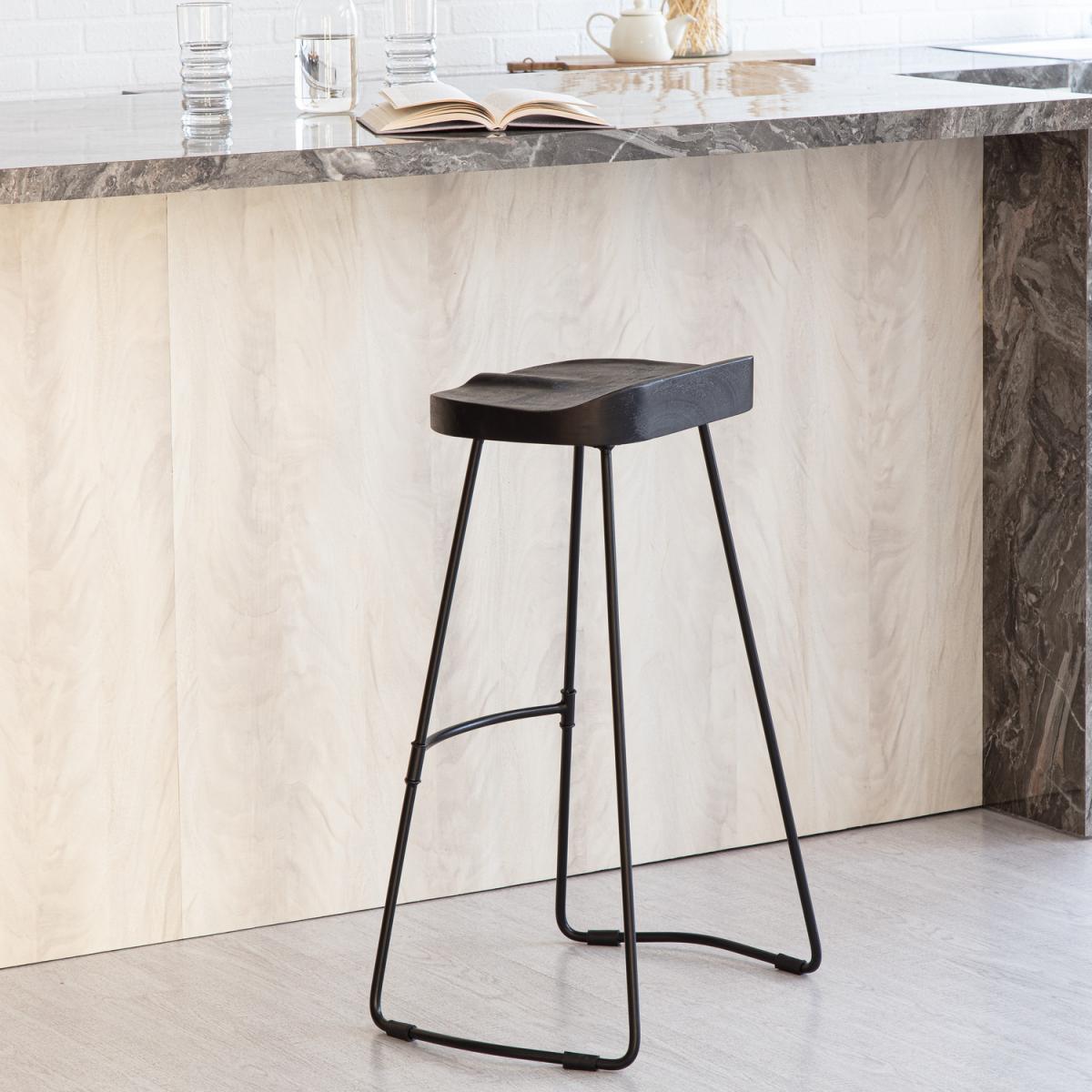 From morning breakfasts to Friday night drinks, this bar stool is here to make things stylish. Sleek metal legs combine with natural mango wood to bring design-focused beauty to your homes. Comfortable and right on trend, it embodies modern curves. The saddle seat and sculptural powder-coated legs, complete with a footrest are ergonomic details that make it a perfect option for guests to perch on as you prepare your signature dish. Handmade by skilled craftsmen, it is a winning addition to your kitchen and bar counters.