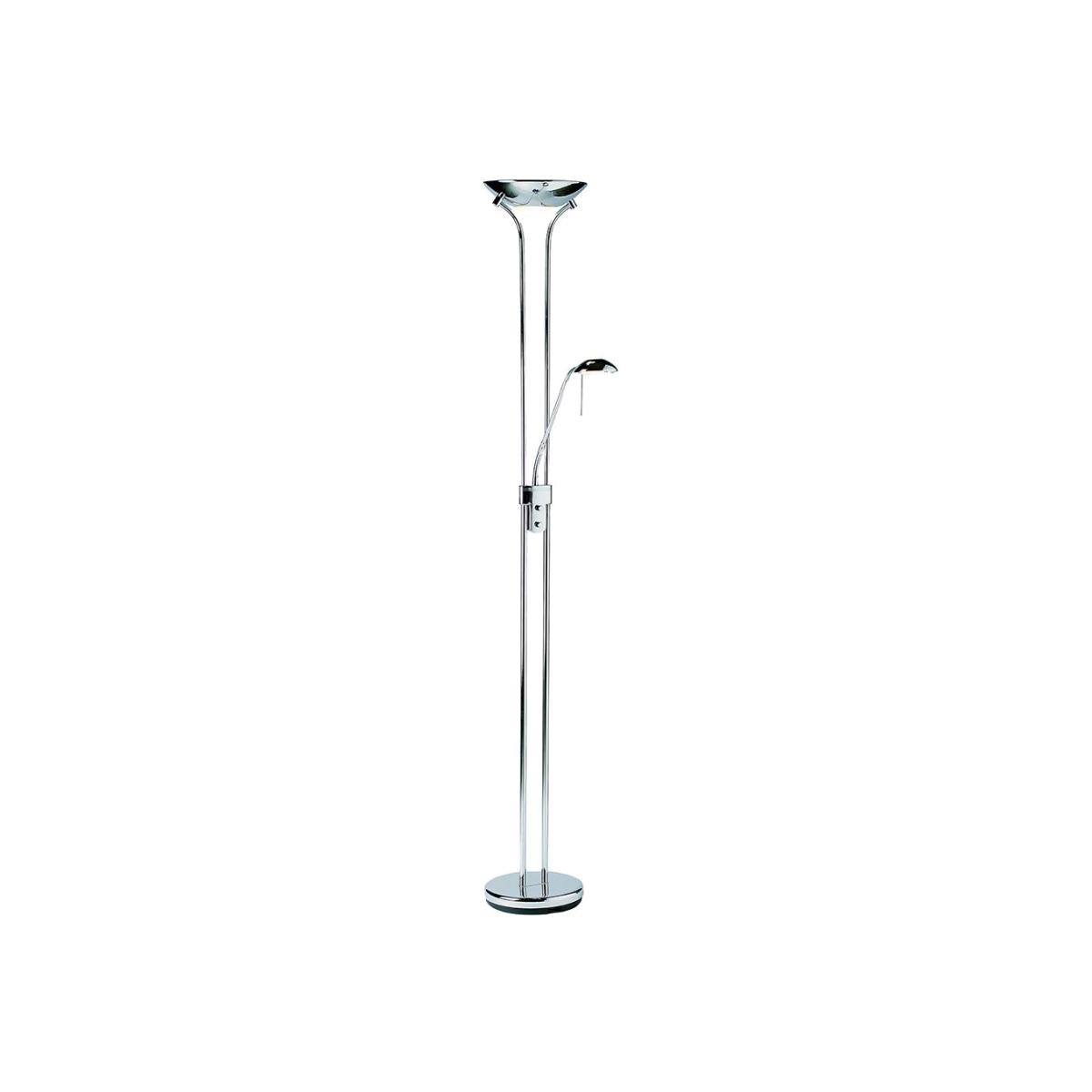 Modern and functional mother & child floor lamp boasting a polished chrome finish Add a modern touch to your home with the Rome Mother & Child Floor Lamp. The light fitting features a bowl uplighter lamp head with frosted diffuser panel underneath. A flexible mid placed reading light completes the look. For practicality a double rotary dimmer switch, which is located in the middle of the floor lamp, allows both sources of light to be individually dimmed for any mood. This floor lamp will suit perfectly into a study or living area which requires focused light for reading. Modern and functional mother & child floor lamp boasting a polished chrome finish Add a modern touch to your home with the Rome Mother & Child Floor Lamp. The light fitting features a bowl uplighter lamp head with frosted diffuser panel underneath. A flexible mid placed reading light completes the look. For practicality a double rotary dimmer switch, which is located in the middle of the floor lamp, allows both sources of light to be individually dimmed for any mood. This floor lamp will suit perfectly into a study or living area which requires focused light for reading.