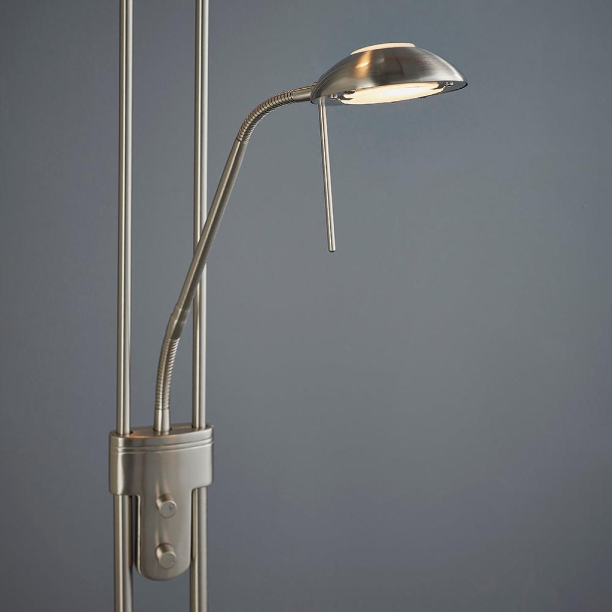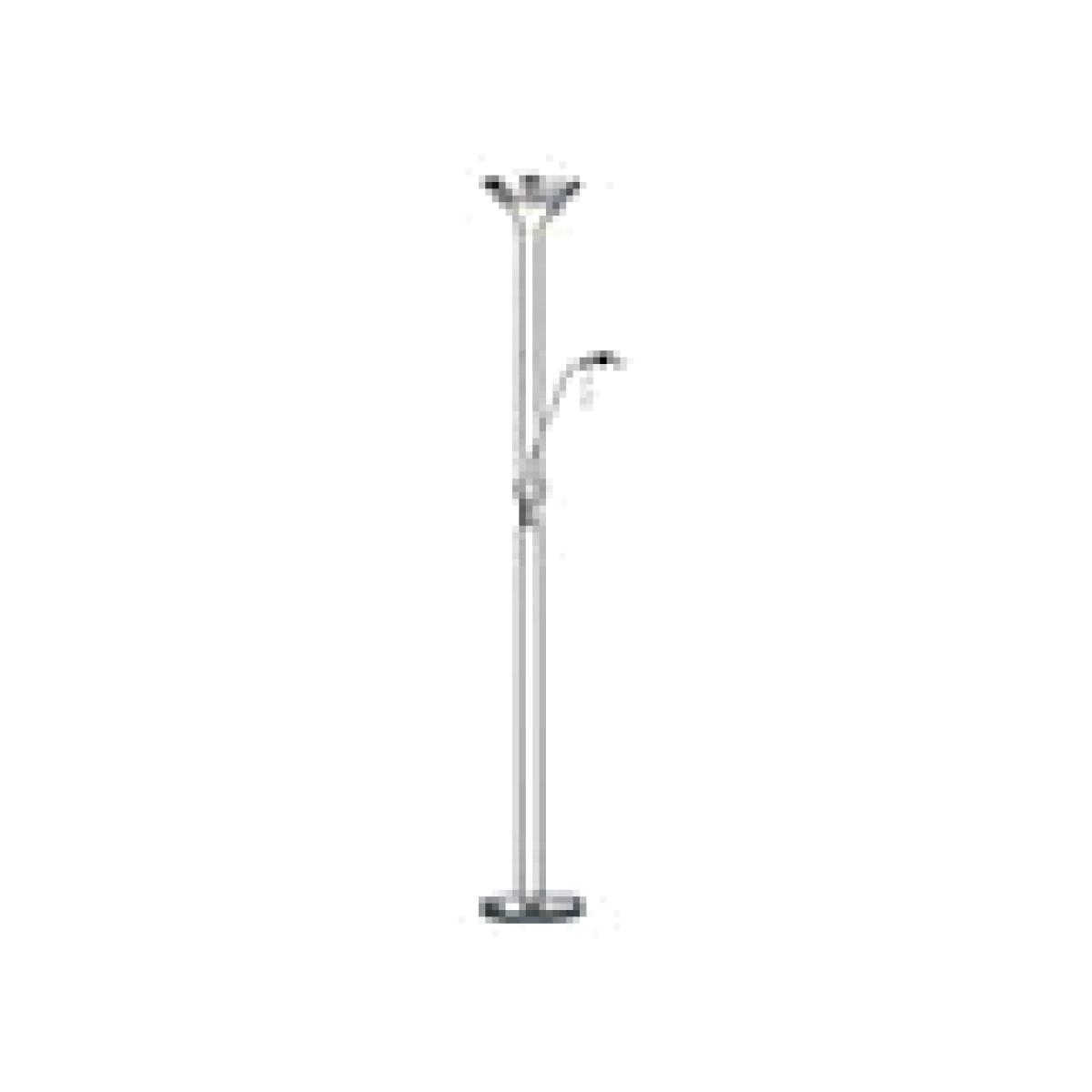 Modern and functional mother & child floor lamp boasting a satin chrome finish Add a modern touch to your home with the Rome Mother & Child Floor Lamp. The light fitting features a bowl uplighter lamp head with frosted diffuse panel underneath. A flexible mid placed reading light completes the look. For practicality a double rotary dimmer switch, which is located in the middle of the floor lamp, allows both sources of light to be individually dimmed for any mood. This floor lamp will suit perfectly into a study or living area which requires focused light for reading. Modern and functional mother & child floor lamp boasting a satin chrome finish Add a modern touch to your home with the Rome Mother & Child Floor Lamp. The light fitting features a bowl uplighter lamp head with frosted diffuse panel underneath. A flexible mid placed reading light completes the look. For practicality a double rotary dimmer switch, which is located in the middle of the floor lamp, allows both sources of light to be individually dimmed for any mood. This floor lamp will suit perfectly into a study or living area which requires focused light for reading.