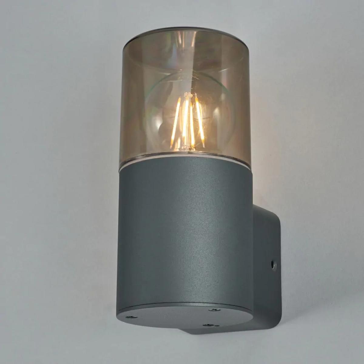 Add a touch of elegance and sophistication to your outdoor space with the Rome Outdoor Round Up Wall Light with Smoked Shade in Grey. This stylish wall light features a round design with a smoked glass shade that creates a soft and warm glow. The grey finish complements any exterior decor and adds a modern touch. This fixture is IP44 rated, meaning it is suitable for outdoor use and can withstand both rain and dust. Whether you want to illuminate your porch, patio, or garden.